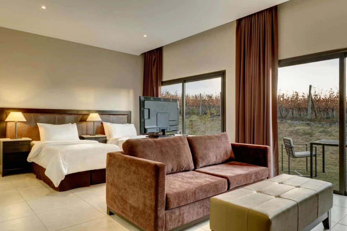 The onsite restaurant captivates with delicious local cuisine, showcasing Mendoza's vibrant flavours, paired with artisanal cocktails from a chic bar. A sun deck, fitness centre, and rejuvenating massage treatments invite relaxation, while activities like golfing in the surrounding winelands spark adventure. Attentive services, including babysitting, car rental, and airport shuttles, curate bespoke explorations of Tupungato's scenic beauty, amplifying the region's rich viticultural pulse.