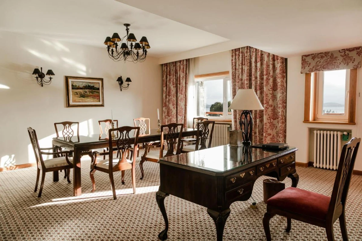 The 205 rooms, studios, and suites across the Ala Bustillo and Lago Moreno wings pulse with refined sophistication, featuring air-conditioned comfort, flat-screen TVs, safety deposit boxes, hairdryers, and plush bathrooms with premium toiletries. The Ala Bustillo wing offers 162 rooms, 11 studios, and 12 suites with lake or mountain views, while the Lago Moreno wing boasts 43 deluxe studios and suites, including master and royal options, many with private balconies unveiling stunning vistas, crafting a serene haven for families, couples, or adventurers. Complimentary Wi-Fi ensures seamless connectivity.