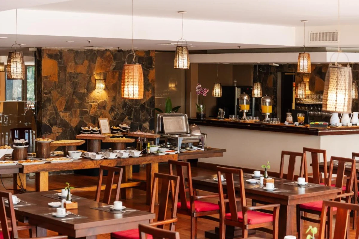 Naipi Restaurant captivates with local gourmet cuisine and subtropical forest views, while Tiki Bar and Yvaga Bar, set by the pools, offer light lunches, snacks, natural juices, and artisanal cocktails infused with regional flavours. An outdoor pool with a deck, sauna, and spa facilities invite relaxation, while suspended bridges and curated trekking or horse-riding trips in the Iryapú Jungle spark adventure. Attentive tour desk and car rental services amplify Misiones' wild, natural pulse.