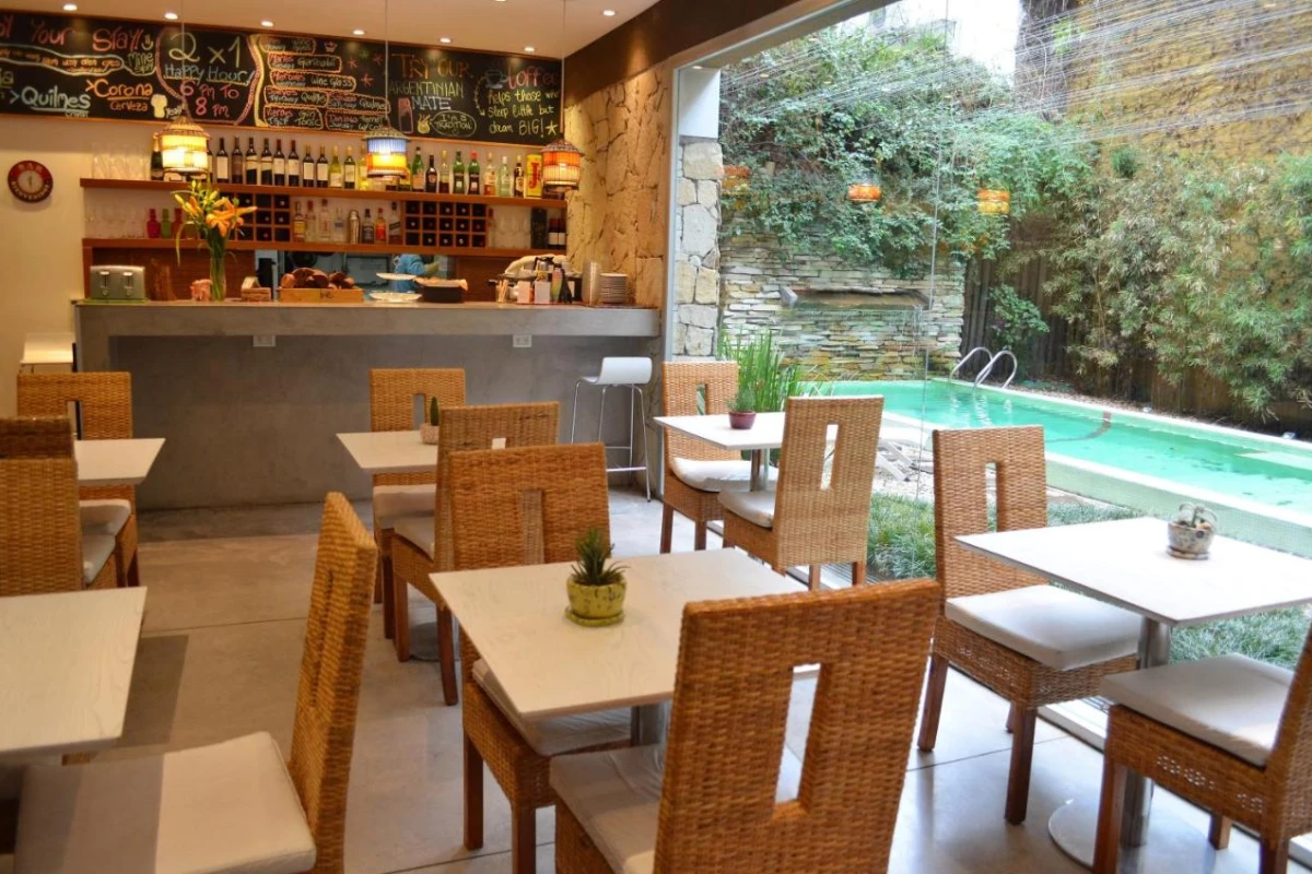 The daily buffet breakfast, with complimentary hot dishes, captivates in a homely living area or serene garden with a water fountain, while the coffee bar serves drinks and hot beverages enjoyed poolside. A garden pool with sun loungers invites relaxation, and the 24-hour front desk curates bespoke explorations to nearby Evita Perón Museum or Palermo's lively nightlife, amplifying Buenos Aires' dynamic cultural pulse.