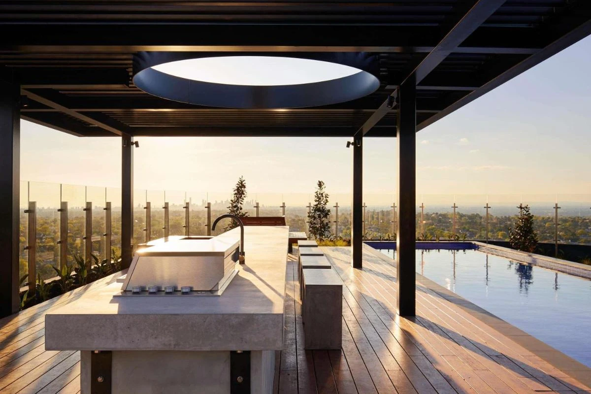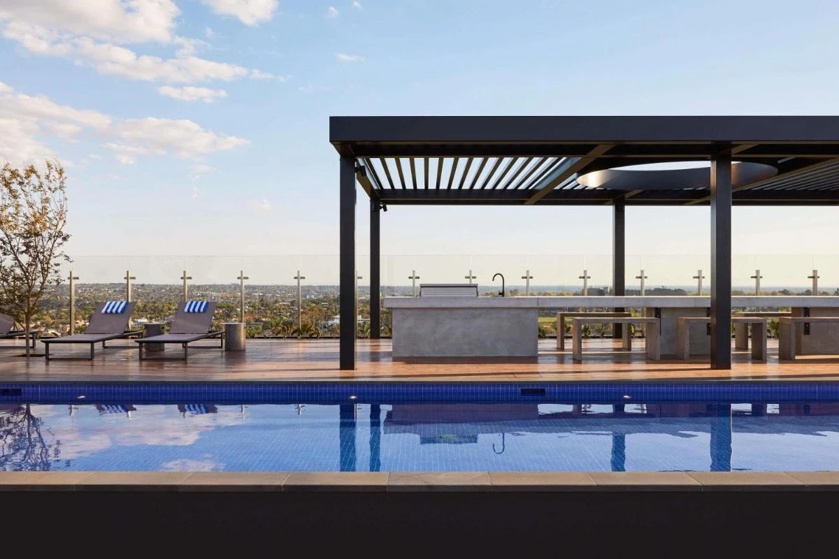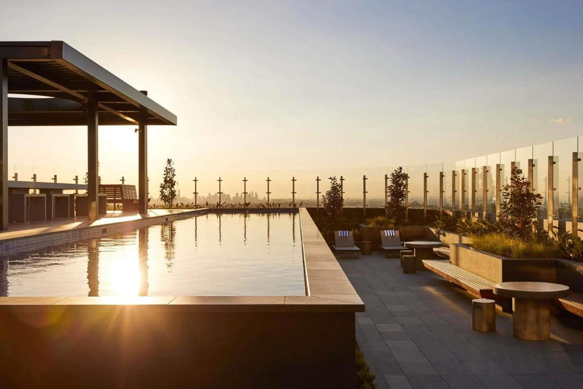 The rooftop pool and entertainment deck provide breathtaking views of Melbourne's glittering CBD and surrounding suburbs, while the nearby dining precinct, featuring BBQ-K, Golden Lily Chinese, Katori Japanese, and Zero Mode Café, offers diverse culinary delights. The 24-hour front desk ensures seamless service, with tram stops at the doorstep for easy exploration of Melbourne's attractions.