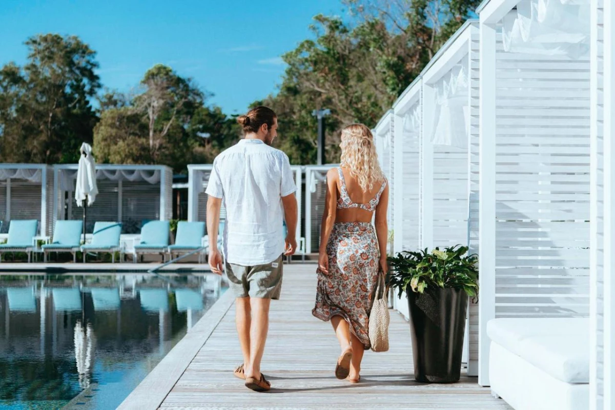 Elements of Byron Resort & Spa, a luxurious retreat on 50 acres of absolute beachfront in Byron Bay, blends modern Australian beach architecture with nature-inspired elegance. Its 202 private villas offer an exquisite escape amidst subtropical paradise.
