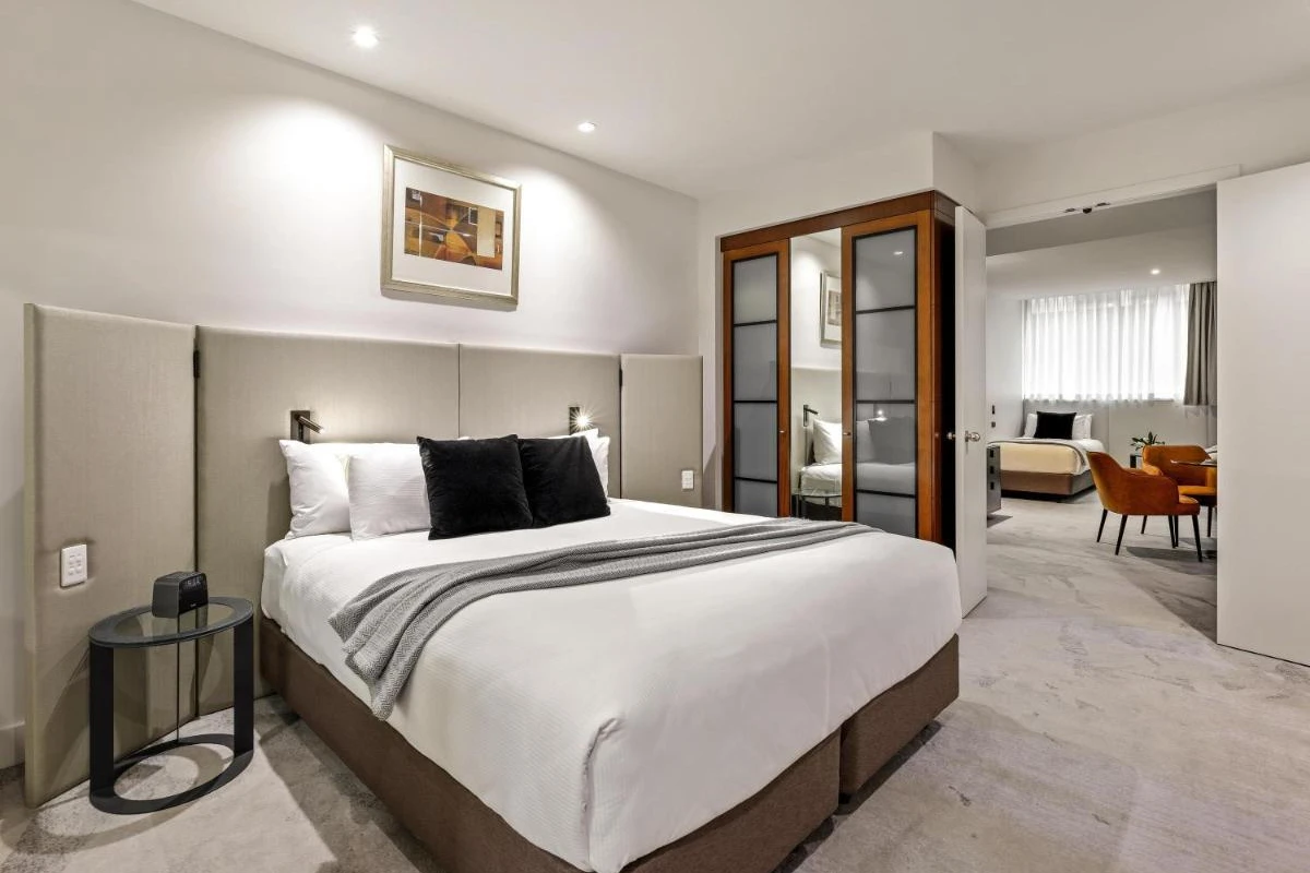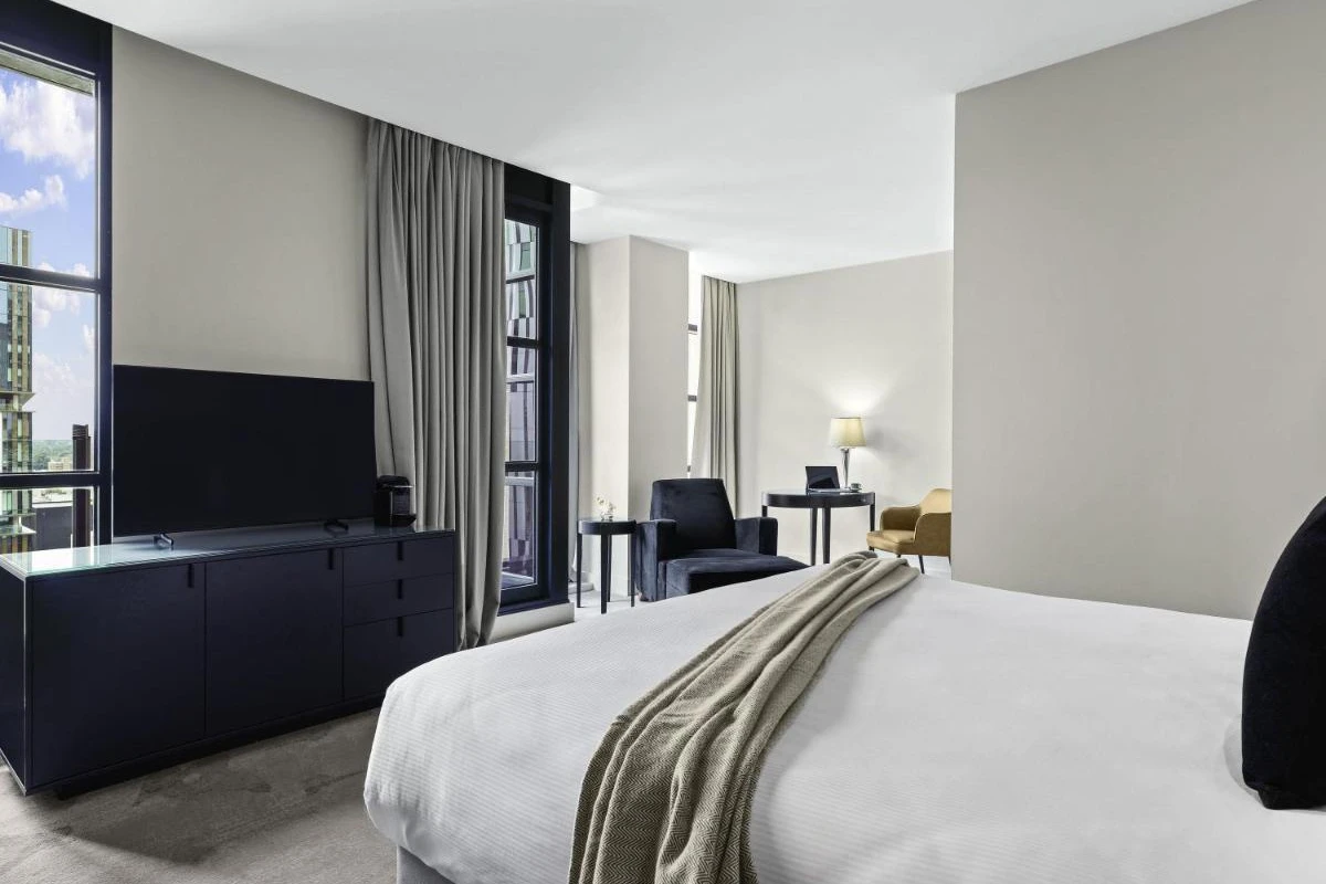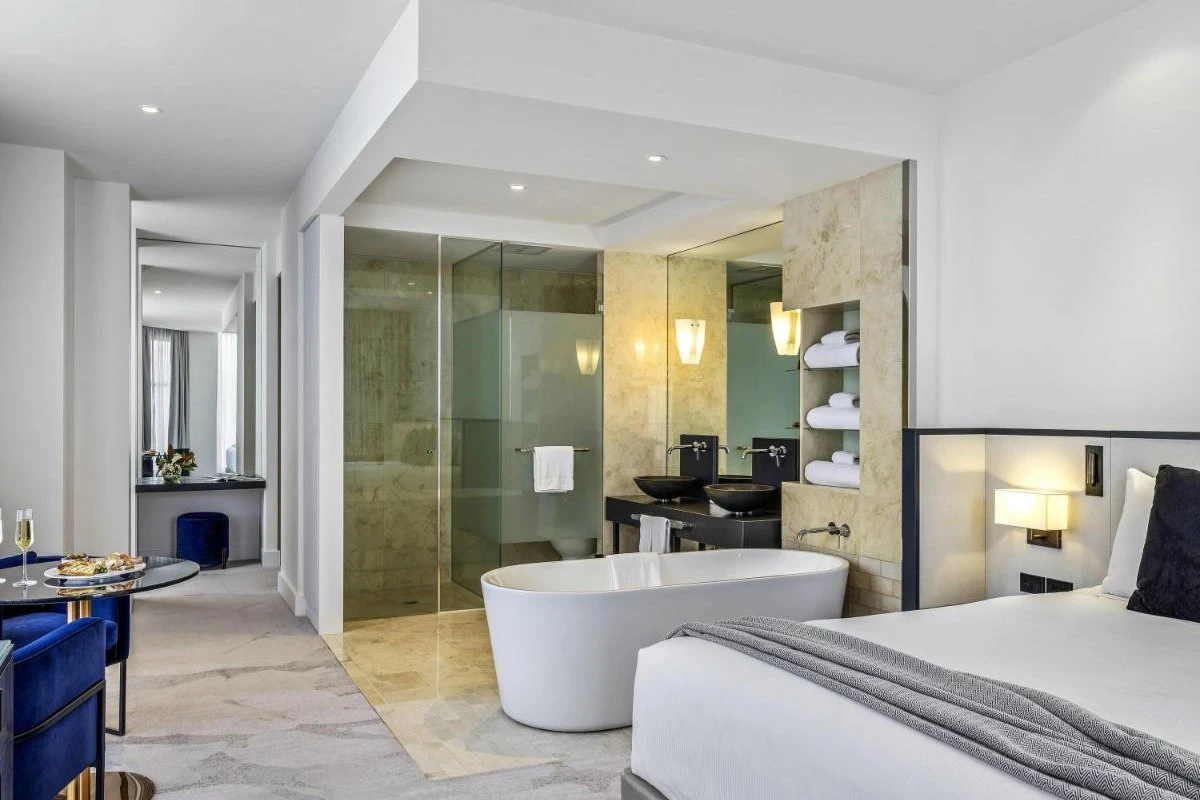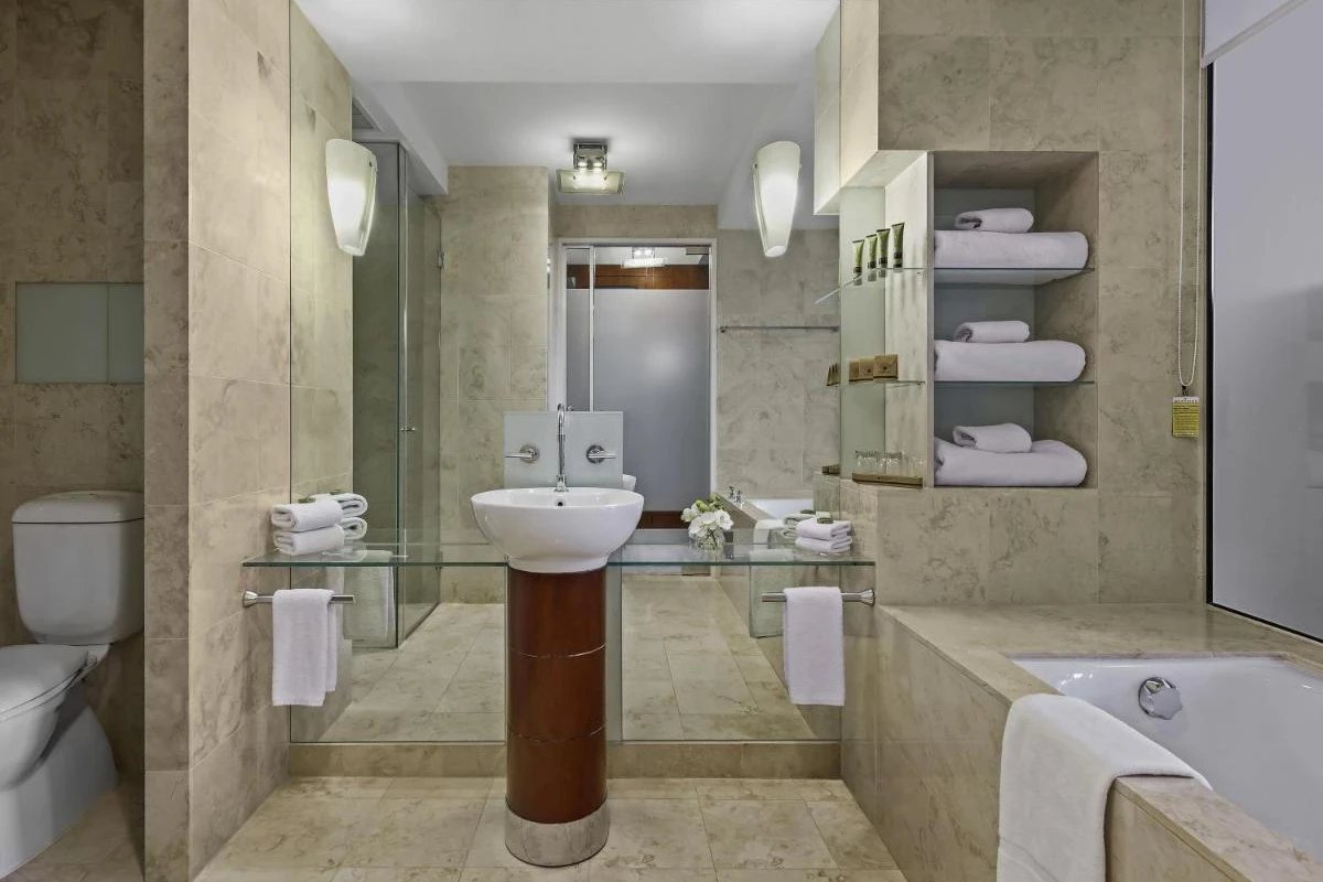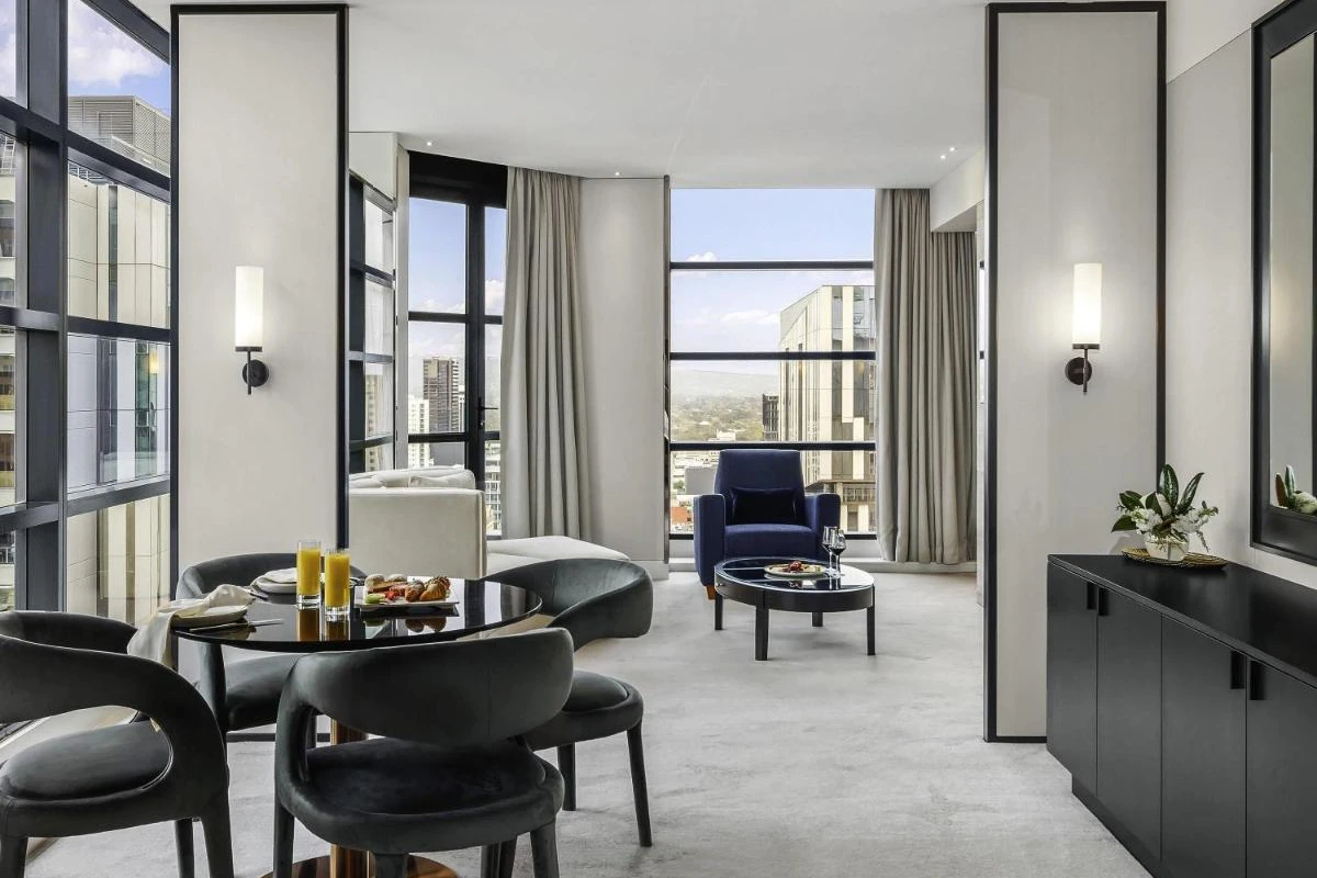 Superbly positioned just a five-minute walk from Central Market and Rundle Mall, the spacious rooms and suites feature marble en-suite bathrooms with deep bathtubs and separate showers, air-conditioning, and floor-to-ceiling windows showcasing dazzling Adelaide skyline views. Select rooms offer private balconies and separate lounge areas, blending contemporary elegance with deluxe fittings and plush furnishings, ensuring a refined sanctuary for discerning travellers seeking both comfort and style. The hotel's strict no-party policy and restriction on unregistered guests after 9pm maintain a serene ambiance.