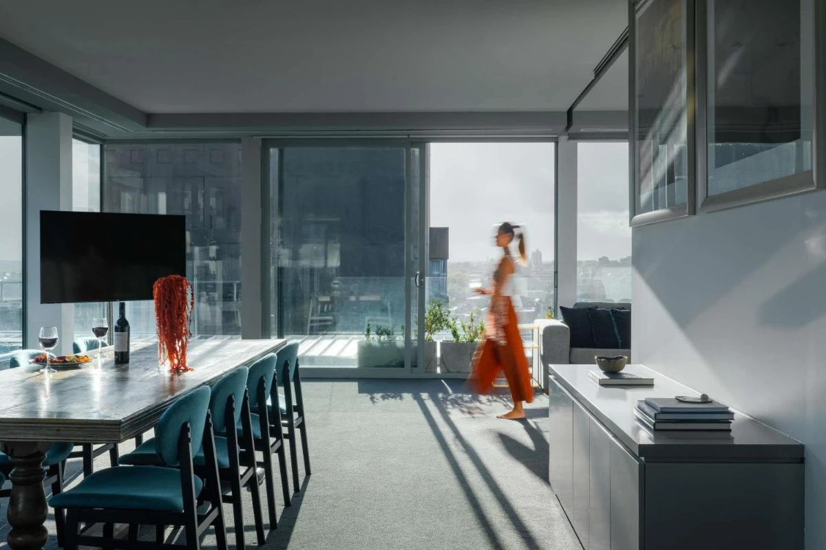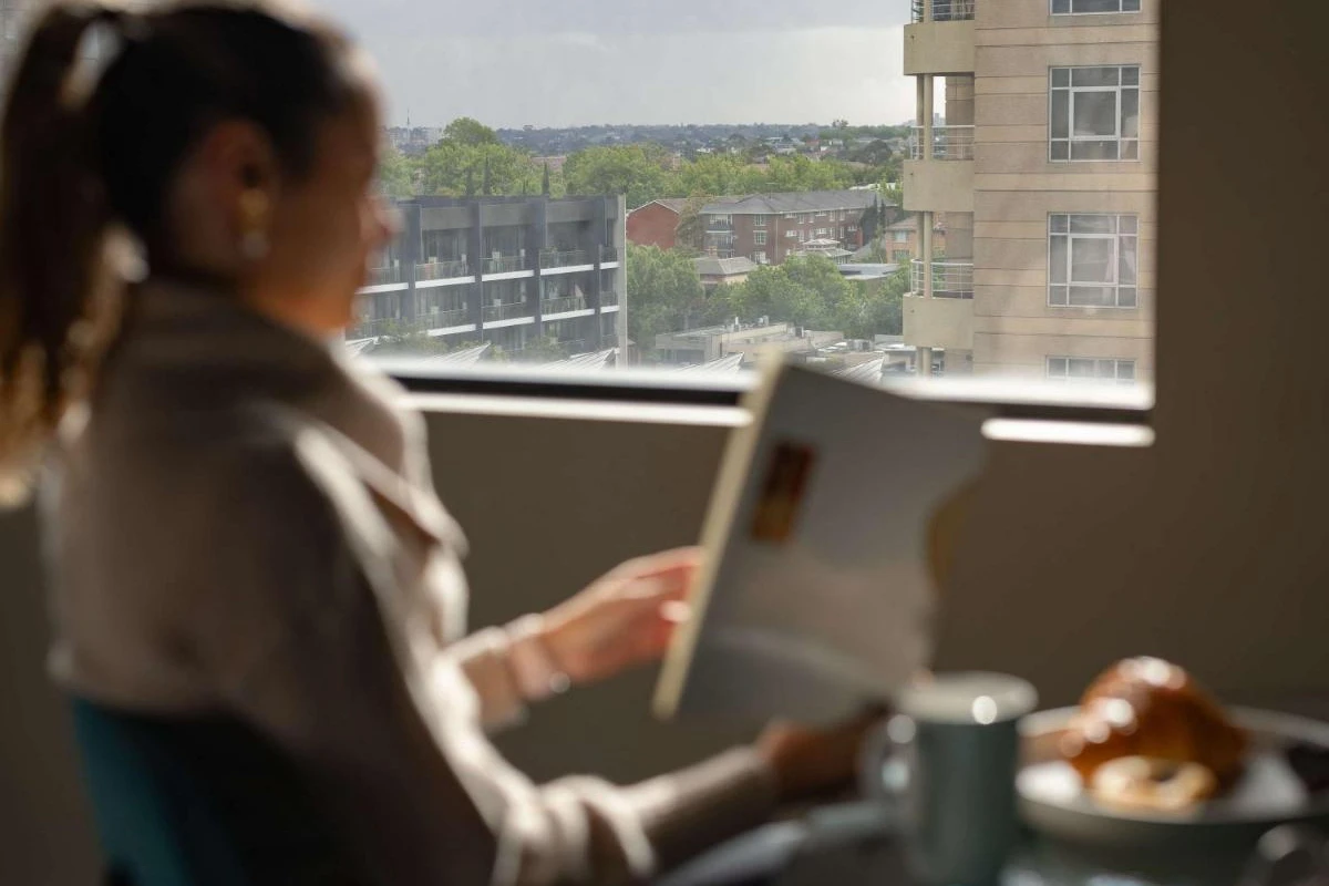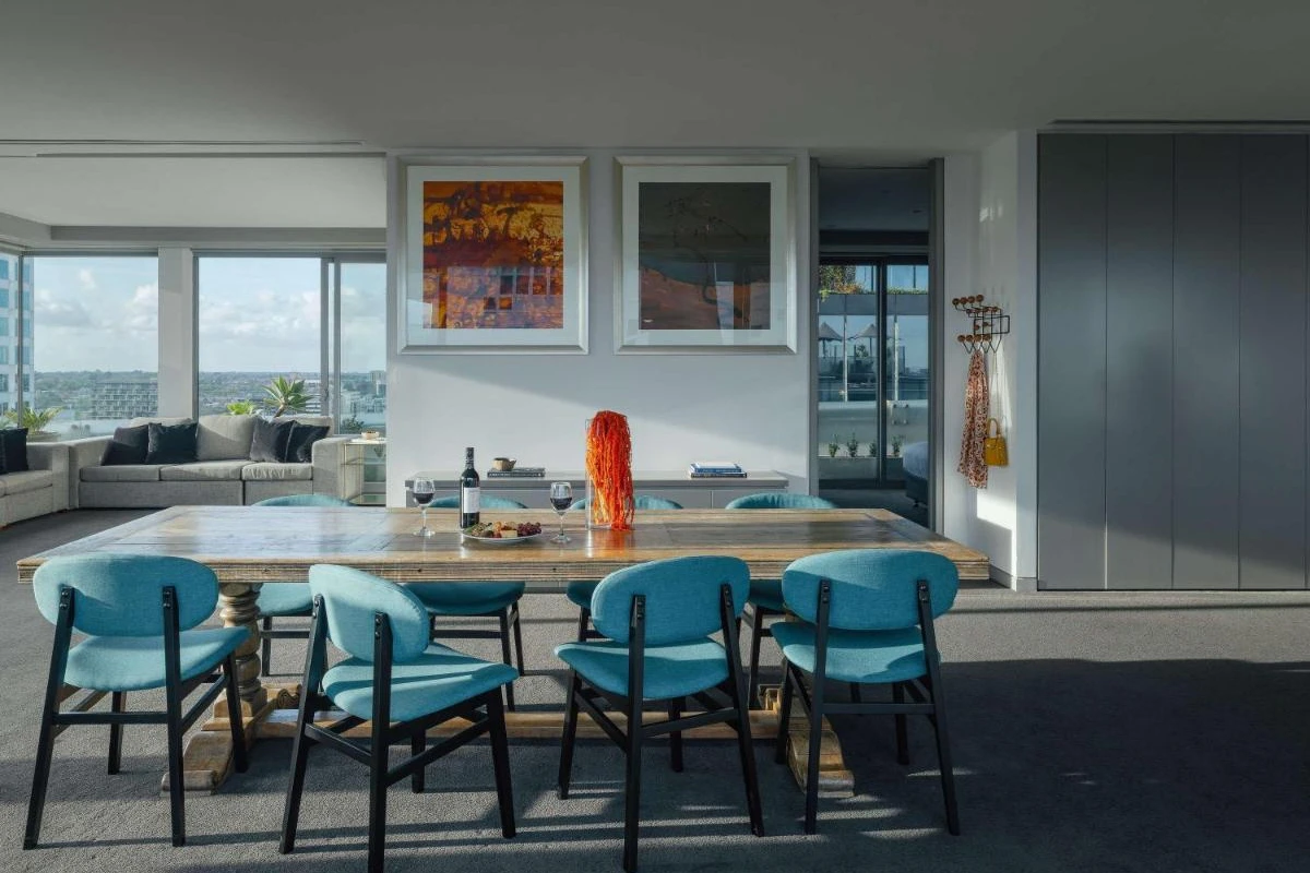 The expansive accommodations, including studio suites, one and two-bedroom Deluxe and Open Plan Suites, and lavish penthouses, feature air-conditioned comfort, kitchenettes, workstations, blackout blinds, flat-screen TVs, and premium Art Series bedding, ensuring maximum relaxation. Each room, infused with Olsen's evocative artwork, blends contemporary sophistication with artistic flair, offering a refined sanctuary for couples, families, or creative souls seeking inspiration. Private balconies in select suites showcase views of the dynamic Chapel Street precinct, harmonizing modern elegance with South Yarra's cultural pulse.