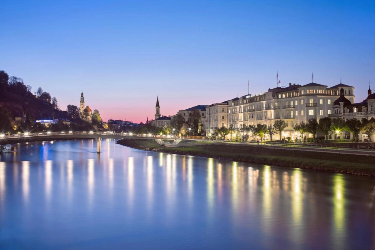 Hotel Sacher Salzburg, a distinguished five-star retreat in the heart of Salzburg, enchants with its timeless Austrian elegance, nestled along the Salzach River with stunning views of the historic Old Town and Hohensalzburg Fortress.