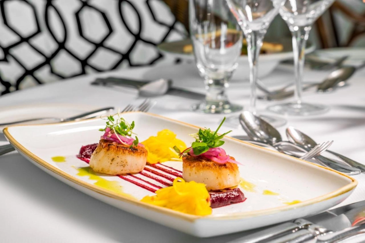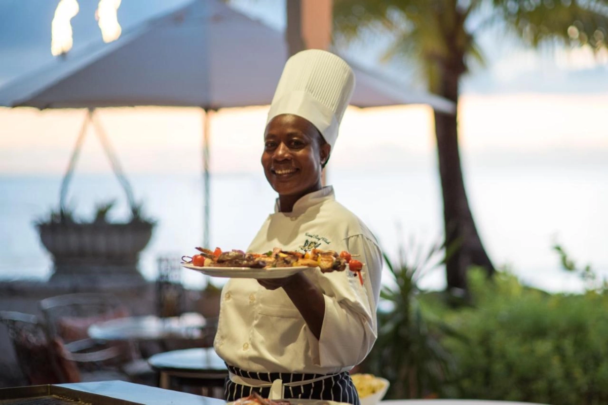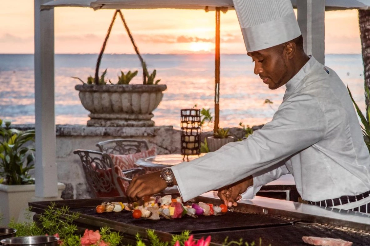 Camelot Restaurant, seaside, serves breakfast buffets with fresh starfruit and pastries, alongside daily-changing dinners of Bajan flying fish and global fare. Vegan options and fine wines pair with live acoustic melodies, while daily English afternoon tea in the lounge adds charm. A vibrant bar crafts rum cocktails, enhancing evenings with calypso rhythms.