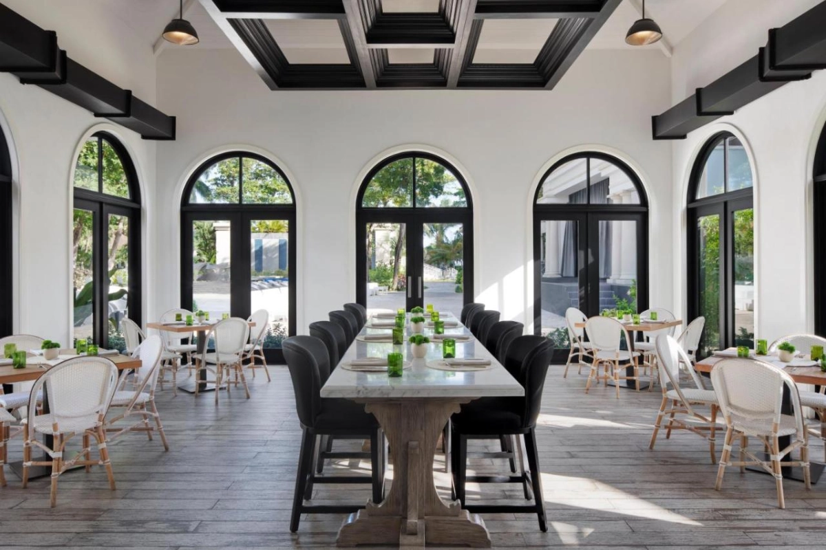 Nine restaurants ignite global flavours. Chi Asian Fusion blends Japanese and Vietnamese dishes, Butch's Chophouse grills premium steaks, and Parisienne serves French fare with sea views. Neptunes offers al fresco seafood, while Greenhouse crafts farm-to-table plates. Access to Sandals Barbados' 11 restaurants expands dining options. Six bars, including a craft beer lounge and swim-up bar, mix Robert Mondavi wines and rum cocktails, paired with Carnivale or White Party nights.