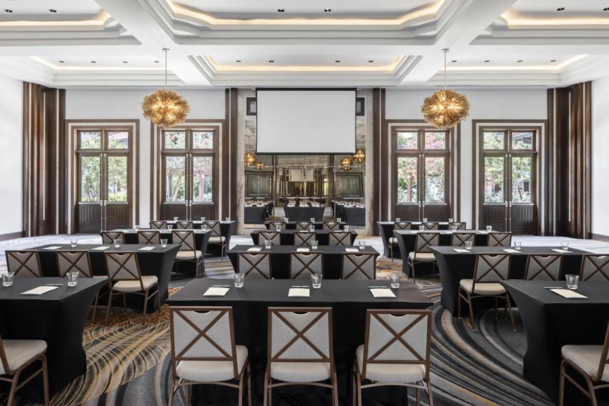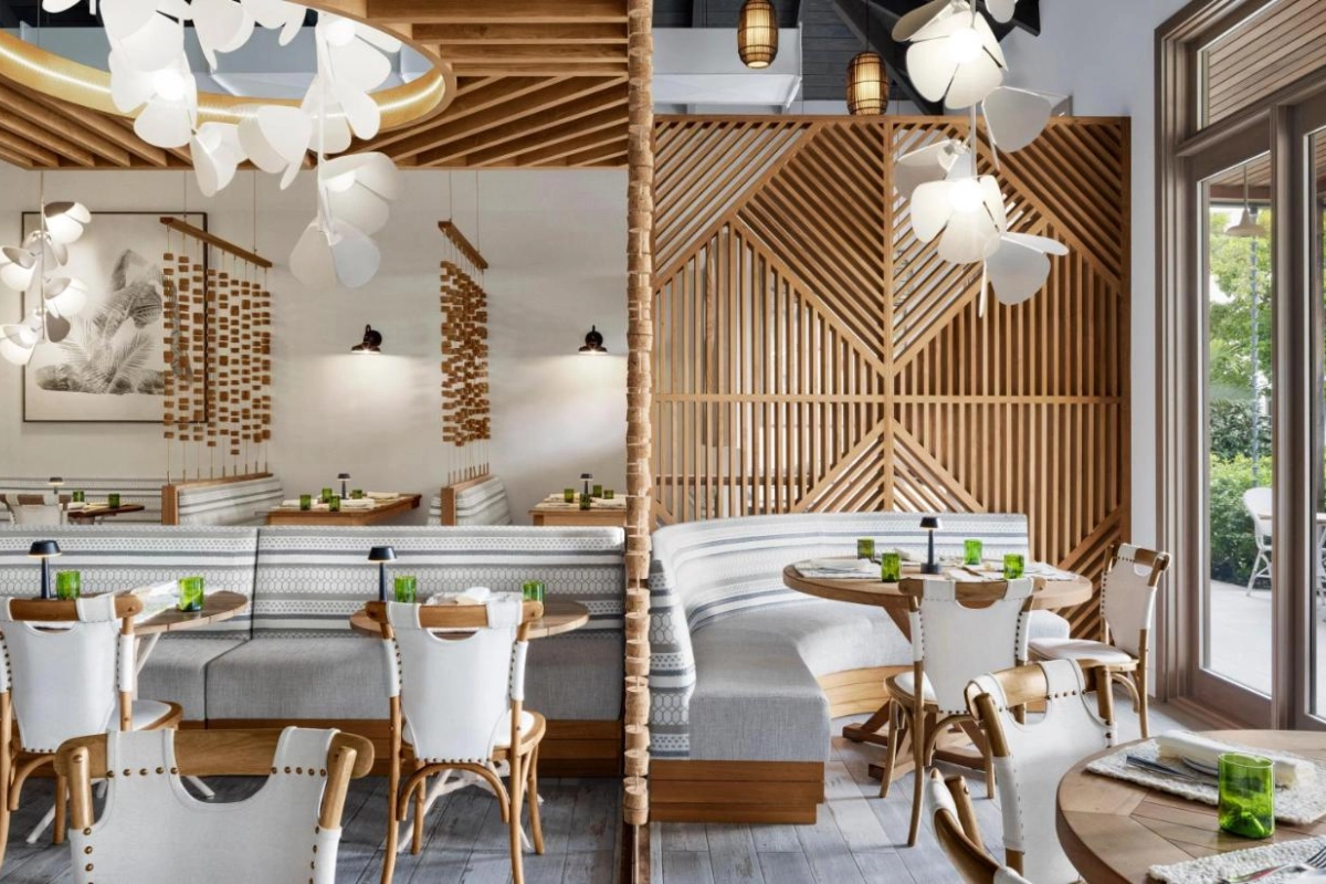 The 350 suites shimmer with chic elegance, featuring air-conditioned comfort, flat-screen TVs, coffee machines, minibars, and private bathrooms with baths or showers and premium toiletries. Private balconies with Tranquility Soaking Tubs or zero-entry pool access, some with Butler Elite service, craft an intimate haven for couples. A rooftop pool, private beach, and complimentary Wi-Fi create a connected yet tranquil setting.