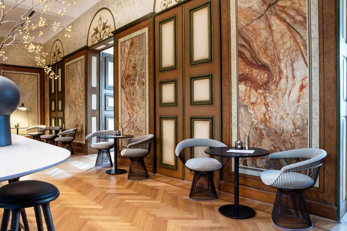 Housed in a beautifully preserved building, this intimate property features 157 modern rooms and suites, each adorned with high ceilings, large windows, and original artworks that honor its heritage. Air-conditioned spaces are equipped with smart HD TVs, wireless sound systems, Nespresso machines, and plush bathrobes, with spacious bathrooms featuring rain showers or deep-soaking baths. Many rooms offer serene views of the historic courtyard garden or the city, creating an ambiance of refined comfort and timeless charm.