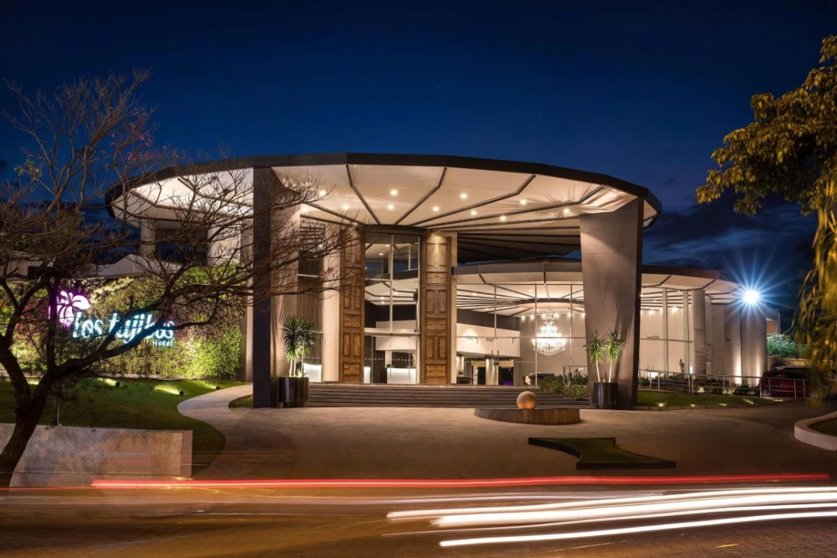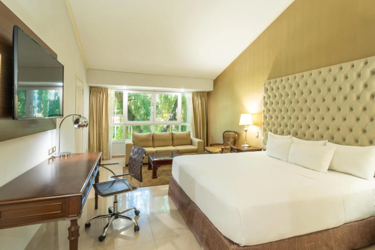 Los Tajibos, a radiant five-star haven in Santa Cruz de la Sierra, enchants with its contemporary elegance since 1975, weaving vibrant Bolivian hospitality and lush natural surroundings into an unforgettable escape, marked by 8-meter hand-carved wooden doors that embody the city's cultural spirit.