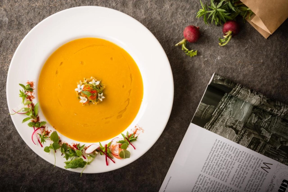 Dining at Anantara Angkor Resort unfolds as a harmonious fusion of flavours. Chi Restaurant & Bar delights with its progressive menu of local Cambodian specialties and refined Western dishes, showcased in an atmospheric space accented by two extensive wine cellars that house rare vintages from around the globe. Road6, Bar & Lounge emerges as the evening's social heart, where guests savour premium cocktails, fine spirits, and select cigars in a stylish setting that hums with quiet sophistication. An à la carte breakfast sets a leisurely tone each morning, while round-the-clock in-room dining options cater to spontaneous cravings. For those seeking deeper immersion, the all-inclusive Discovery Package weaves in à la carte meals, engaging daily activities, and essential temple passes, or the indulgent Wellness Package layers on transformative spa treatments to renew body and spirit.