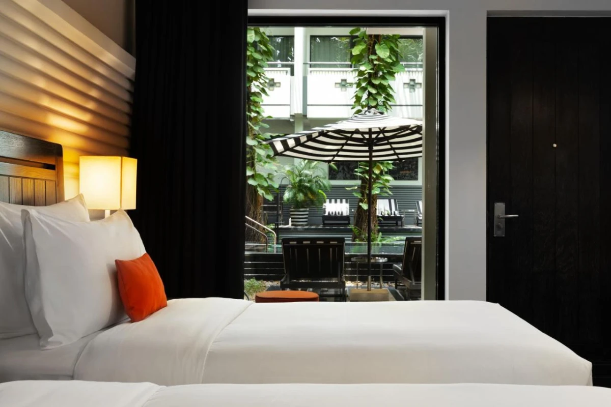 Modern rooms blend contemporary elegance with cultural motifs, providing city or pool views, flat-screen cable televisions, safety deposit boxes, and tea and coffee facilities. Private bathrooms deliver thoughtful comforts like premium toiletries, bathrobes, and slippers, creating inviting spaces where guests can relax and connect with the property's community spirit.