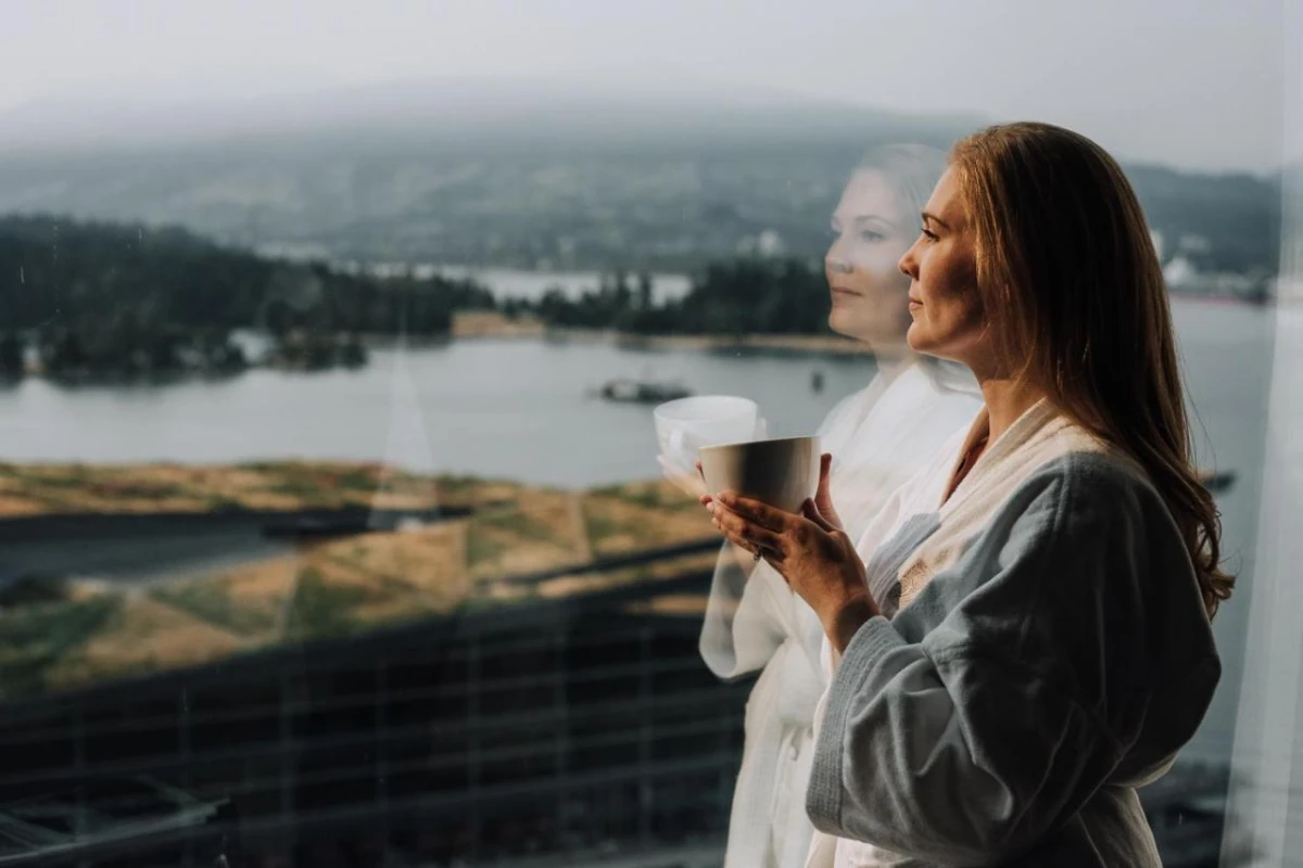 The 489 spacious rooms and suites, elegantly appointed with contemporary decor, feature air-conditioned comfort, floor-to-ceiling windows, flat-screen TVs, minibars, in-room safes, coffee and tea facilities, and plush bathrooms with bathrobes and premium toiletries. Many rooms showcase spectacular vistas of the harbour or North Shore Mountains, creating a refined sanctuary for couples, families, or business travellers. The exclusive Fairmont Gold floor, a hotel within a hotel, elevates the experience with complimentary breakfast, evening canapés, personal concierge service, and a private lounge and terrace with stunning harbour views, blending modern sophistication with warm hospitality.