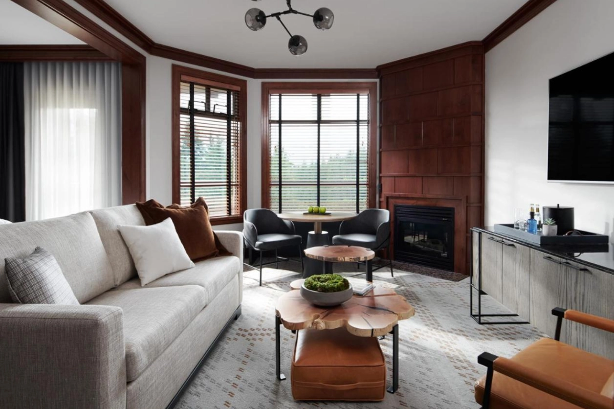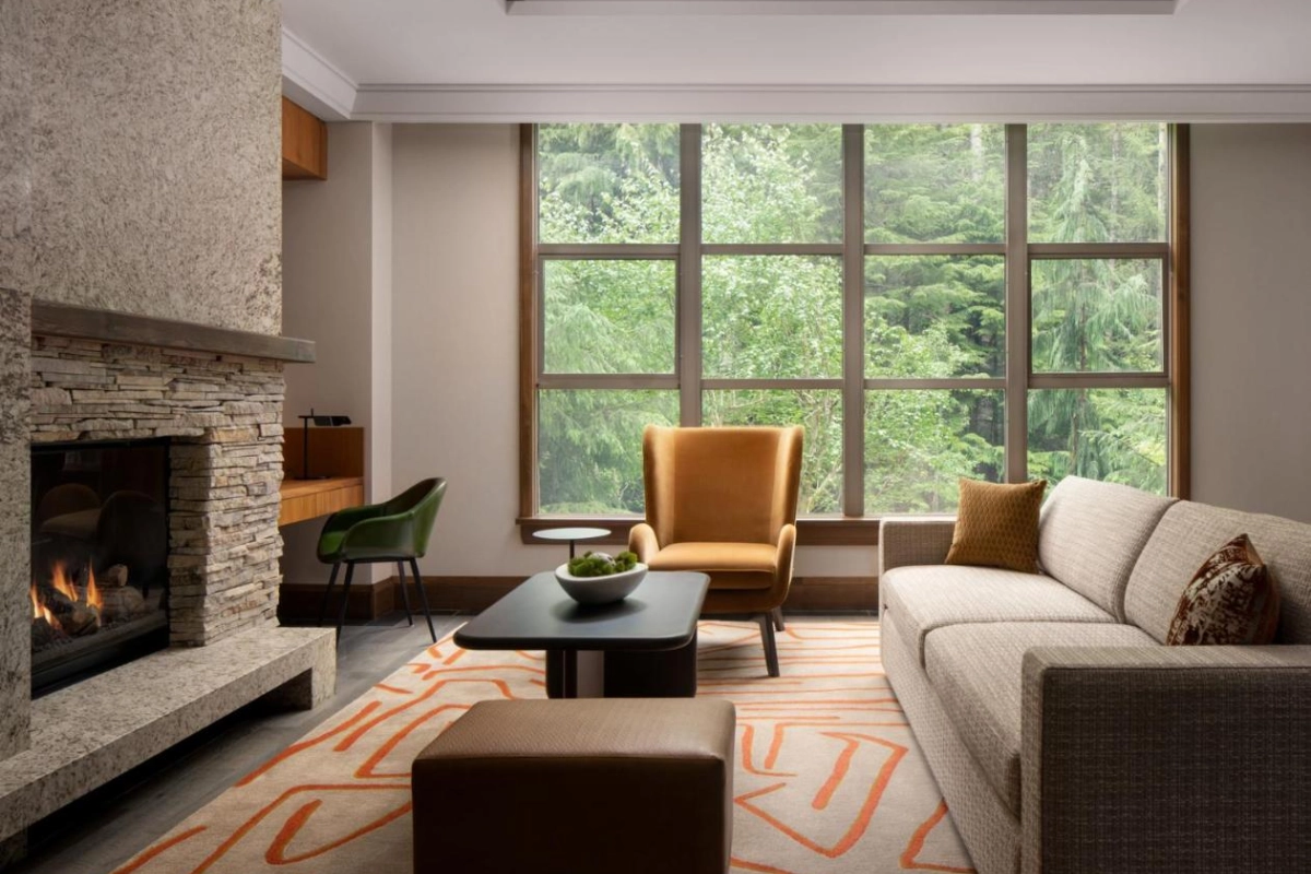 The elegantly appointed rooms and suites, designed for refined comfort, feature air-conditioned elegance, flat-screen cable TVs, cozy gas fireplaces in seating areas, and plush bathrooms with premium toiletries. Offering captivating views of Whistler and Blackcomb Mountains, the forest, or tranquil courtyards, each space creates a serene sanctuary for skiers, couples, or families seeking a luxurious mountain getaway. Complimentary Wi-Fi ensures seamless connectivity, while the resort's contemporary design harmonizes with its alpine surroundings, delivering a refined yet inviting ambiance.