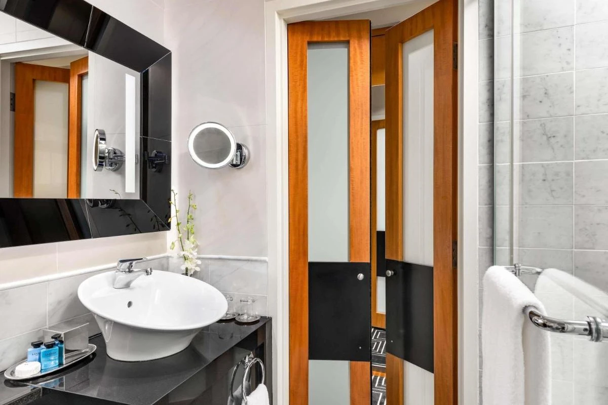The 239 elegant rooms and 17 suites, adorned with Victorian accents inspired by railroad pioneer William Cornelius Van Horne, feature air-conditioned comfort, Sofitel's luxurious SoBed feathertop and duvet sleep system, flat-screen TVs, minibars, and plush bathrooms with premium toiletries. Each space combines minimalist design with warm sophistication, creating a refined sanctuary with views of Mount Royal Park or the bustling cityscape, perfect for couples, families, or professionals seeking a seamless blend of heritage and modern luxury. The hotel's Green Key, Recyc Quebec, and Gaia certifications reflect its commitment to sustainable practices.