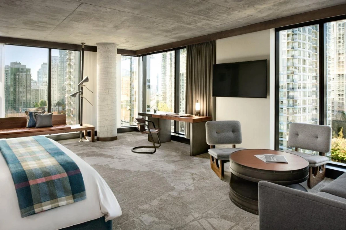 The 188 stylishly appointed rooms, built to LEED Gold standards, feature air-conditioned comfort, flat-screen TVs with Internet TV, illy coffee and tea facilities, and plush bathrooms with luxurious amenities and complimentary toiletries. Many rooms offer stunning views of Vancouver's cityscape or nearby stadiums, creating a refined sanctuary for couples, business travellers, or families seeking a sophisticated escape. Thoughtful interiors seamlessly integrate natural elements with modern elegance, ensuring a harmonious retreat that reflects Vancouver's rich heritage and dynamic energy.