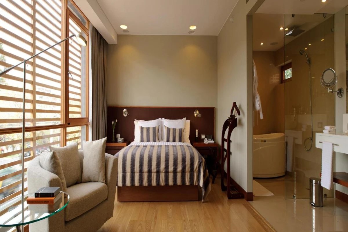 Fronterizo Restaurant tempts with gourmet Chilean dishes and a full buffet breakfast featuring regional jams, paired with artisanal cocktails from a chic bar. A rooftop pool, rejuvenating spa with heated pool, sauna, steam baths, and a fitness centre invite relaxation, while attentive staff curate tailored adventures to nearby Parque Arauco and Costanera shopping malls or Bicentenario Park, fueling Santiago's spirited energy.