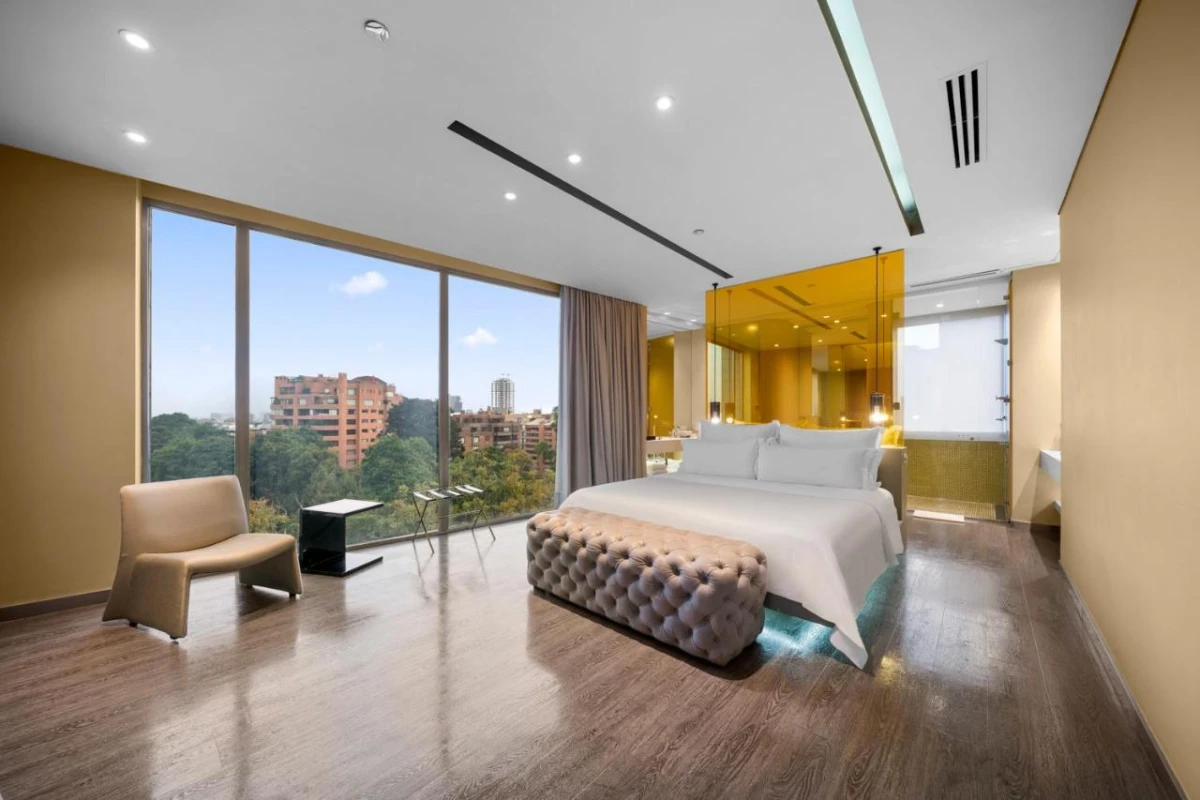 B.O.G. Hotel, an exquisite five-star sanctuary in Bogotá's vibrant La Cabrera neighborhood, captivates with its bespoke design by Nini Andrade Silva, intertwining Colombian cultural heritage with shimmering hues of bronze, emerald, and slate for an immersive urban escape.