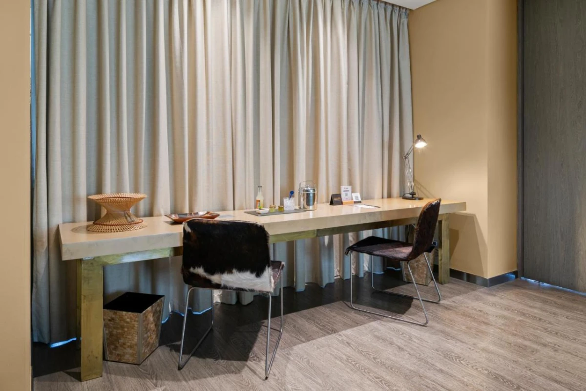 The 55 expansive rooms weave a tapestry of modern luxury, boasting air-conditioned serenity, LCD satellite聆, minibar, and plush bathrooms adorned with premium toiletries. Each room, inspired by the Gold Museum's treasures, features a cozy seating area and sweeping city or Andes mountain views, creating an inviting retreat for explorers or professionals. Complimentary Wi-Fi ensures seamless connection in this artful haven.
