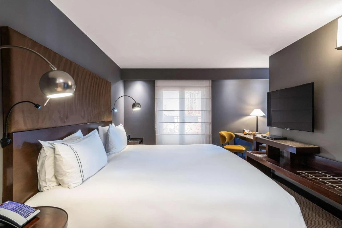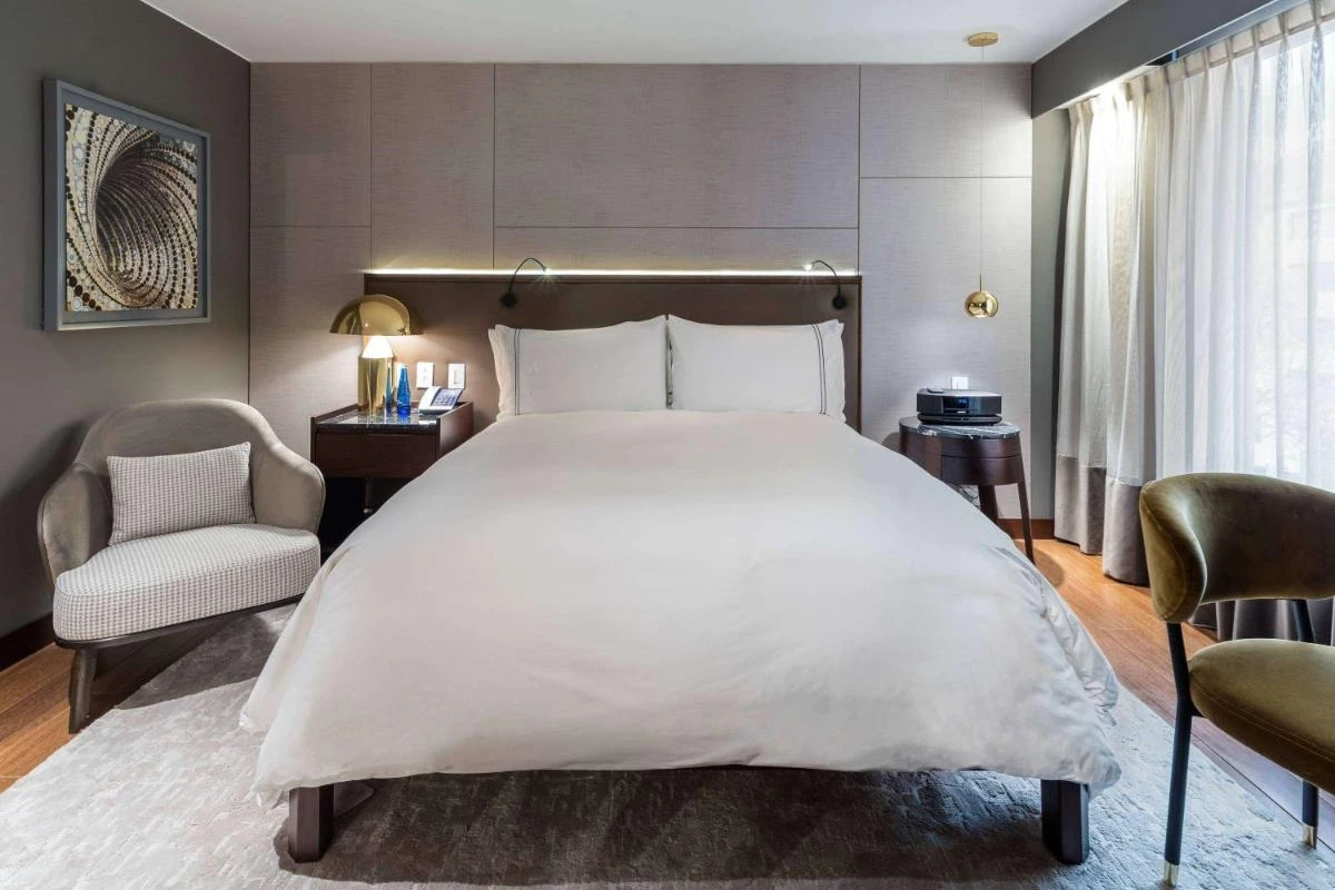 The 102 meticulously crafted rooms brim with refined comfort, featuring air-conditioned tranquility, 400-count sheets, feather duvets, a pillow menu, flat-screen TVs, work desks, minibars, and plush bathrooms with Hermes or Lanvin toiletries. Many rooms offer city views, crafting a serene retreat for business travellers, couples, or culture seekers. Complimentary Wi-Fi ensures seamless connection in this polished sanctuary.
