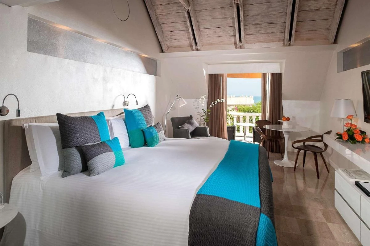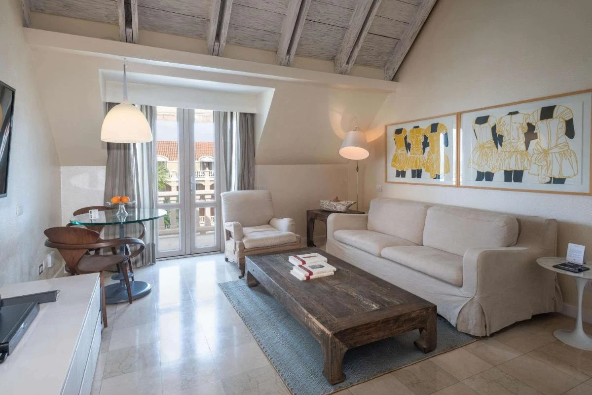 The 123 elegantly appointed rooms brim with timeless sophistication, featuring air-conditioned tranquility, flat-screen TVs, minibars, and plush bathrooms with premium toiletries. Balconies overlooking lush hotel gardens or the shimmering Caribbean Sea craft an intimate retreat for couples, families, or explorers. Complimentary Wi-Fi ensures seamless connection in this historic sanctuary.