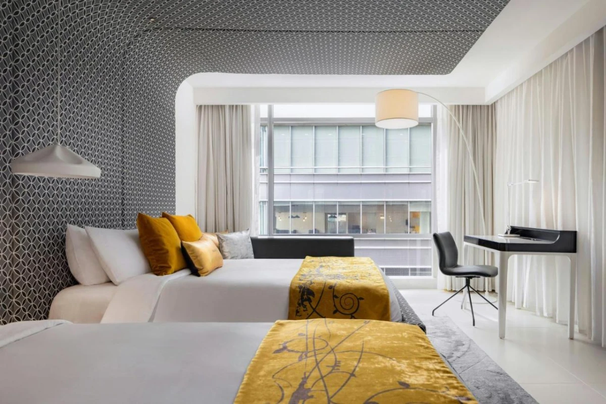 The 168 spacious rooms brim with chic sophistication, featuring air-conditioned comfort, flat-screen cable TVs, minibars, cozy seating areas, and plush bathrooms with premium toiletries. Floor-to-ceiling windows unveil dynamic city views, crafting a stylish haven for adventurers, couples, or professionals. Complimentary Wi-Fi ensures seamless connection in this glamorous oasis.