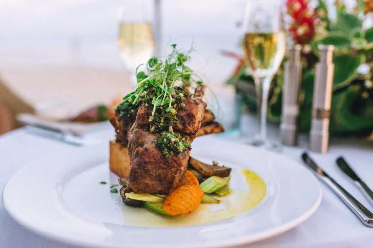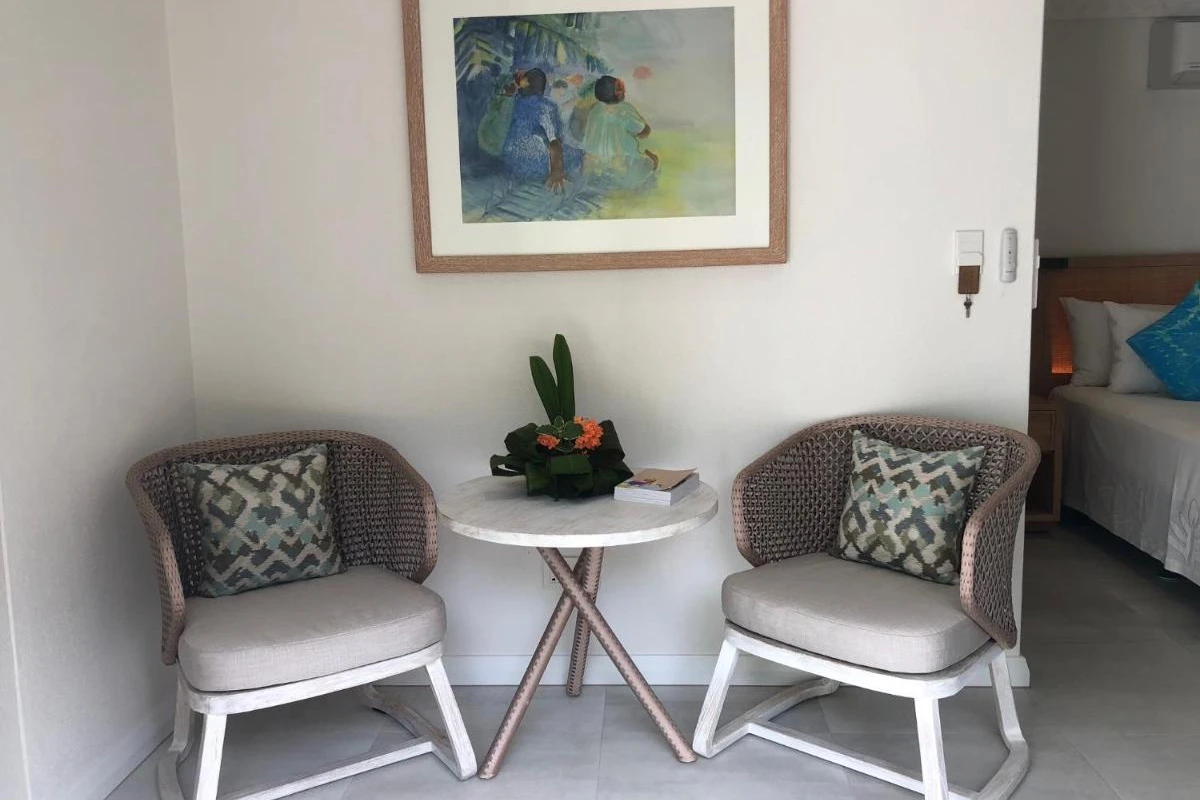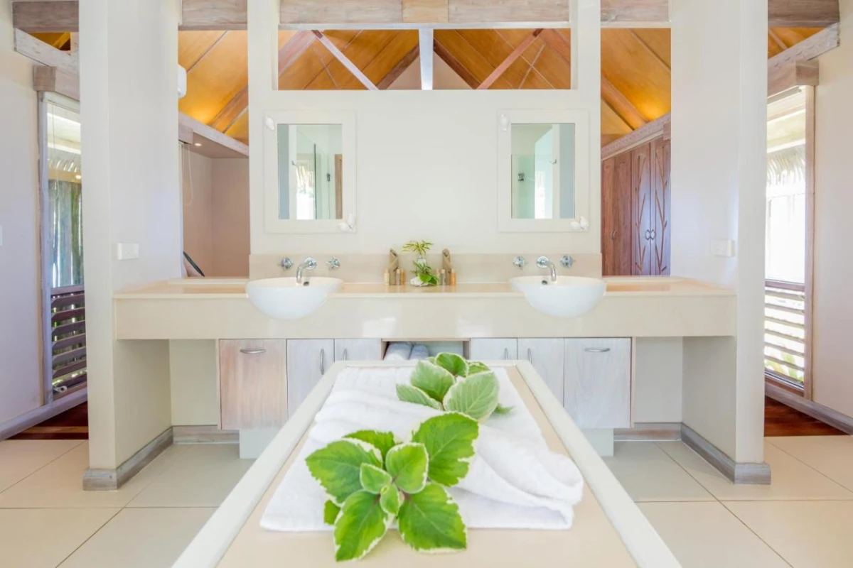 Dining begins with a tropical island breakfast at the open-air restaurant, featuring fresh fruits, pastries, and local coffee, served with views of the lagoon or delivered directly to your bungalow. The restaurant's evening menu highlights Polynesian flavours, with dishes like grilled reef fish and tropical desserts, while a beachfront bar crafts refreshing cocktails perfect for sunset toasts. Guests can unwind by the infinity pool or lounge on the pristine beach, with complimentary kayaks and snorkeling gear inviting exploration of the lagoon's vibrant marine life. A tranquil spa offers massages and treatments inspired by island traditions, ensuring moments of deep relaxation.