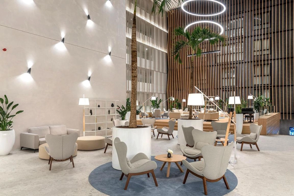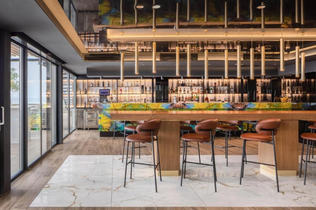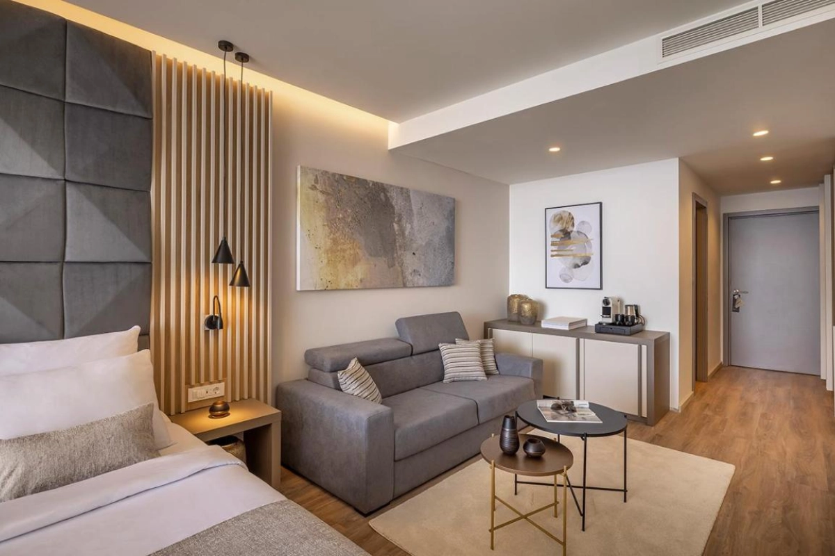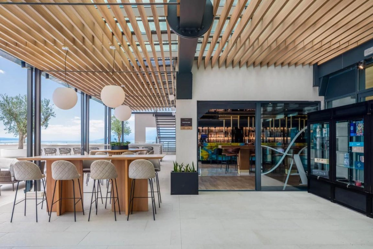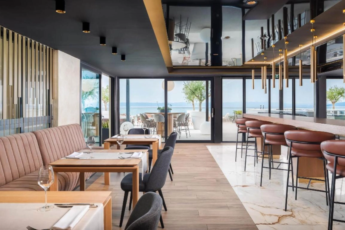 The hotel's restaurant delights with a lavish buffet breakfast showcasing fresh pastries, local cheeses, and Mediterranean specialties, while its dinner menu highlights exquisite regional and international cuisine. The refined bar crafts artisanal cocktails and fine wines, perfect for savouring in a relaxed setting by the sea. Whether enjoying a vibrant evening or a quiet sunset drink, the dining spaces elevate every moment with coastal flair.