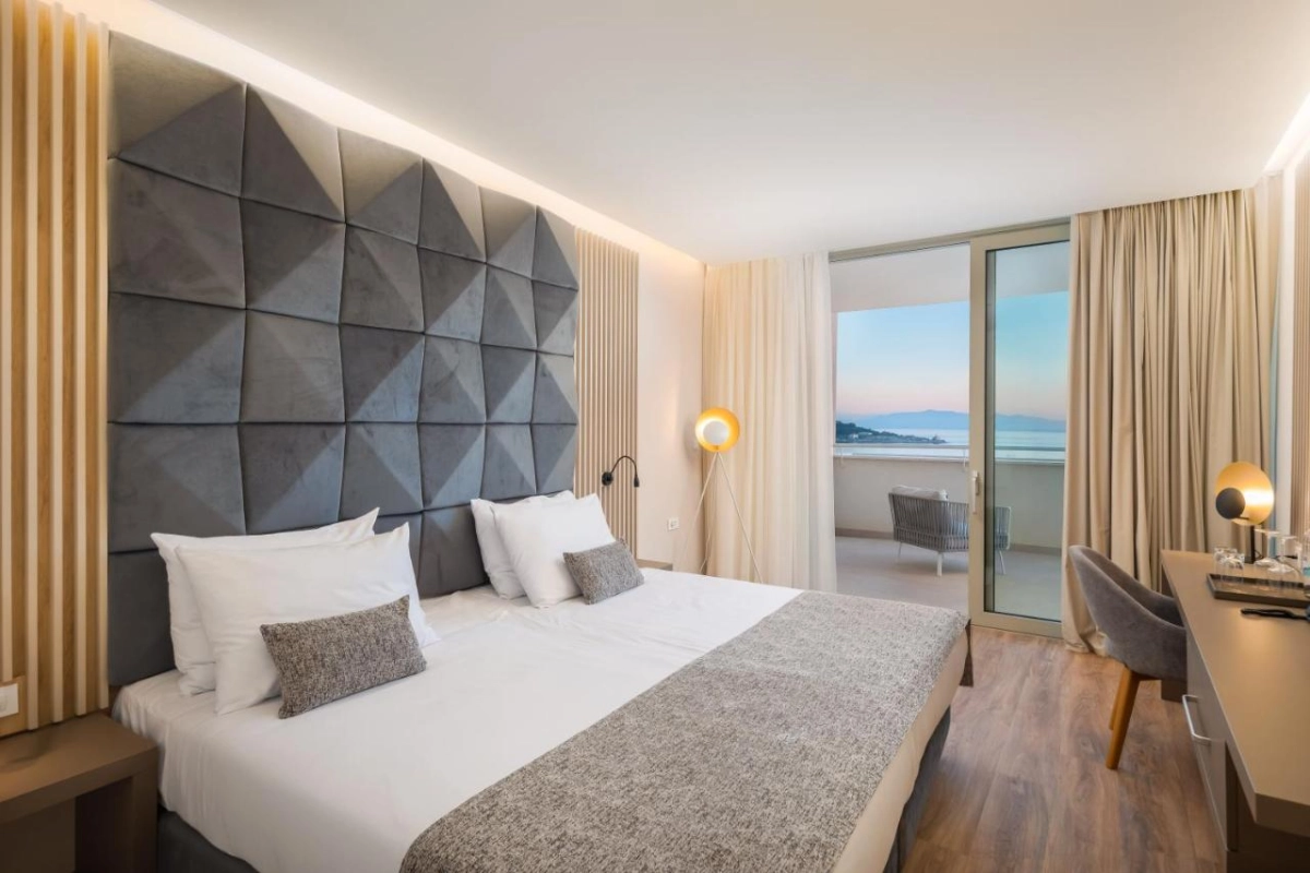 Perched just 100 meters from Biloševac Beach, this elegant property features 181 air-conditioned rooms, each designed with modern sophistication. Guests enjoy flat-screen TVs, coffee machines, kettles, safety deposit boxes, wardrobes, desks, and private bathrooms with showers and premium toiletries. Select rooms boast balconies with captivating sea views, creating a serene atmosphere that blends contemporary comfort with coastal charm.