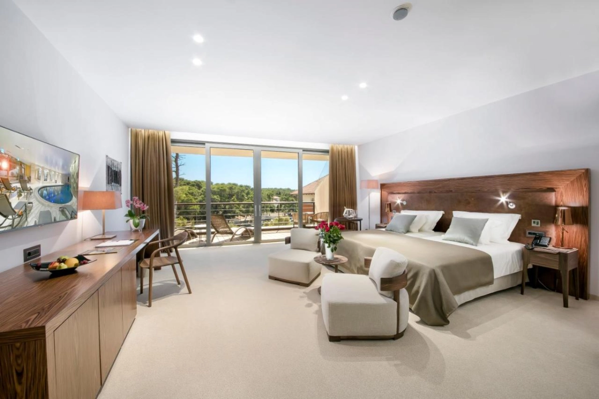 The wellness area offers a tranquil retreat with an indoor swimming pool, sauna, and bespoke massage and beauty treatments, complemented by a modern fitness room. The private beach invites leisurely days under the Adriatic sun, and tailored excursion services arrange adventures like coastal boat trips. Guests can access additional amenities at the nearby Hotel Bellevue, while a dedicated concierge curates personalized explorations of Lošinj's cultural and natural gems.