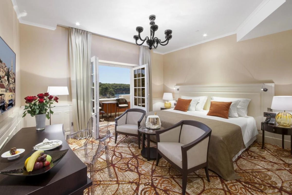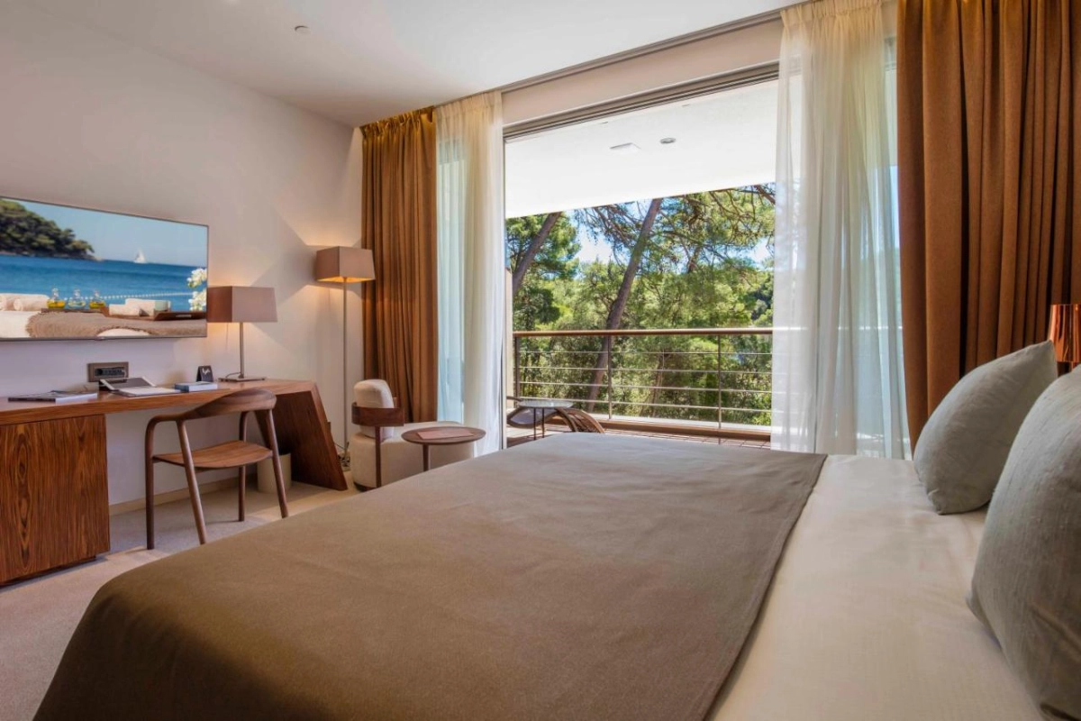 Housed in a historic villa, this intimate property features 51 elegantly appointed rooms and suites, each blending timeless charm with modern comforts. Air-conditioned spaces include satellite TVs with internet access, iPod docking stations, anti-allergenic pillows, Nespresso machines, and architectural lighting, with bathrooms offering bathrobes, slippers, and premium toiletries. Many rooms frame views of the Adriatic or lush gardens, creating a warm, sophisticated atmosphere that invites relaxation.
