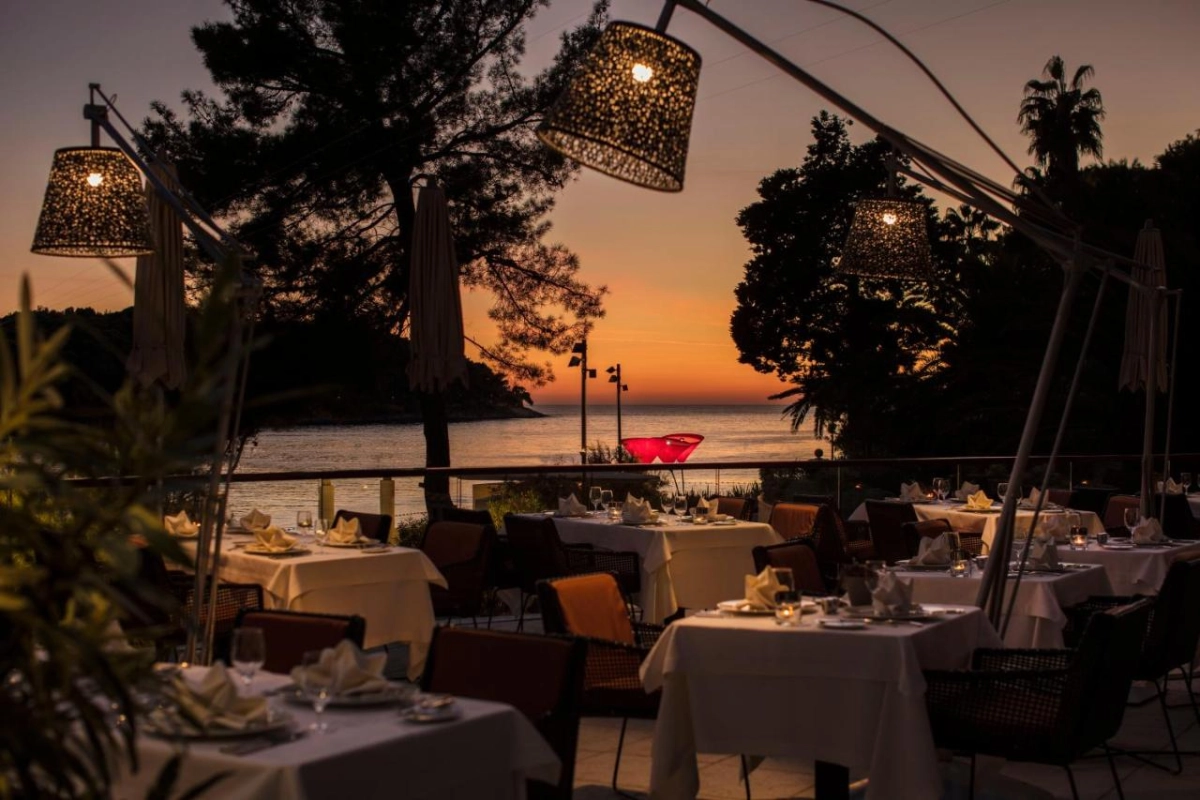 Dining at the Michelin-starred Alfred Keller restaurant is a culinary triumph, showcasing an array of fine-dining dishes crafted from fresh, seasonal ingredients, paired with curated wines in a refined setting. Additional dining options flourish in Mali Lošinj's vibrant centre, just 1 kilometer away. The hotel's tea bar offers light bites and soothing beverages, perfect for quiet afternoons, while a daily breakfast buffet, brimming with fresh pastries and local specialties, energizes guests in an elegant dining space.