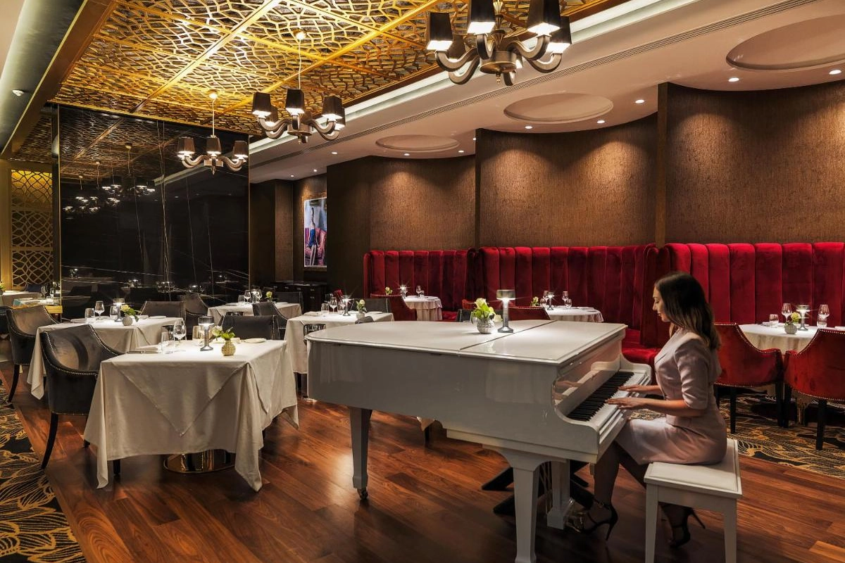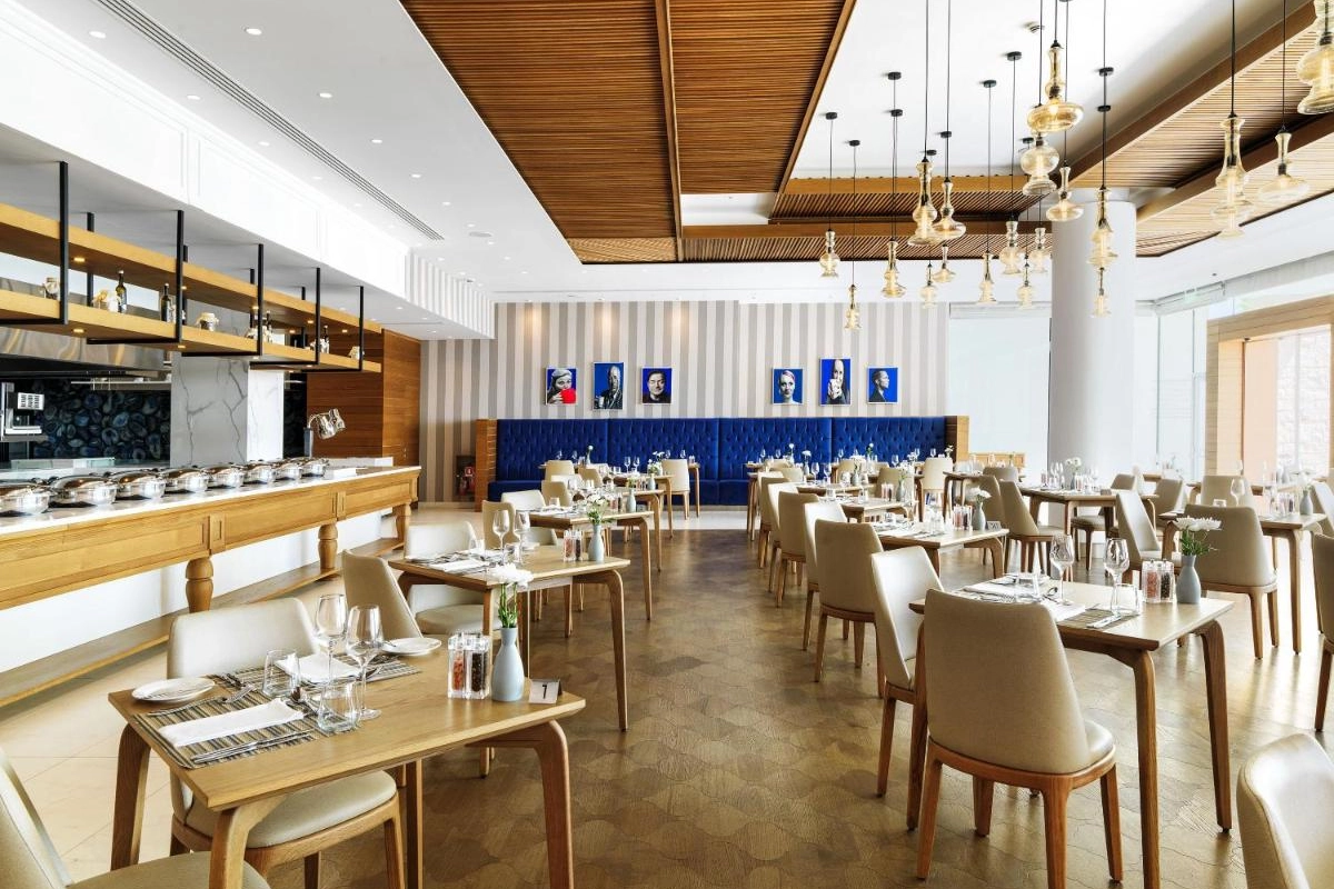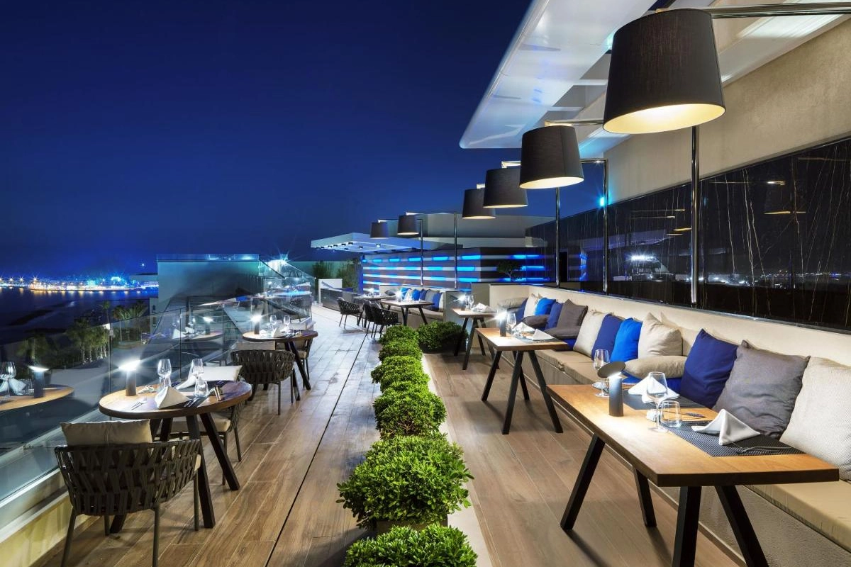 Dining at Amavi is a celebration of shared moments. Ezaria's open kitchen crafts international dishes with live cooking, served indoors or on breezy terraces. Nocturne, bathed in live piano melodies, offers Mediterranean fine dining with artful plates from its à la carte menu. Immenso, a rooftop gem, pairs grilled specialties and sushi with sweeping sea views. Fortolana, by the water's edge, reimagines Cypriot cuisine with fresh, local ingredients and a modern twist. Three distinct bars elevate the experience: Selene's elegant terrace serves signature cocktails with live music, Sapphire's poolside lounge offers refreshing drinks, and The Lounge, flooded with sunlight, provides a relaxed haven for coffee or evening spirits. Curated activities, from sunset walks to private harbor tours, deepen the romantic escape.