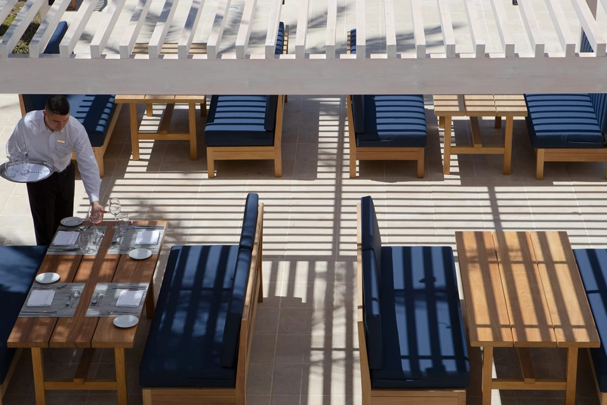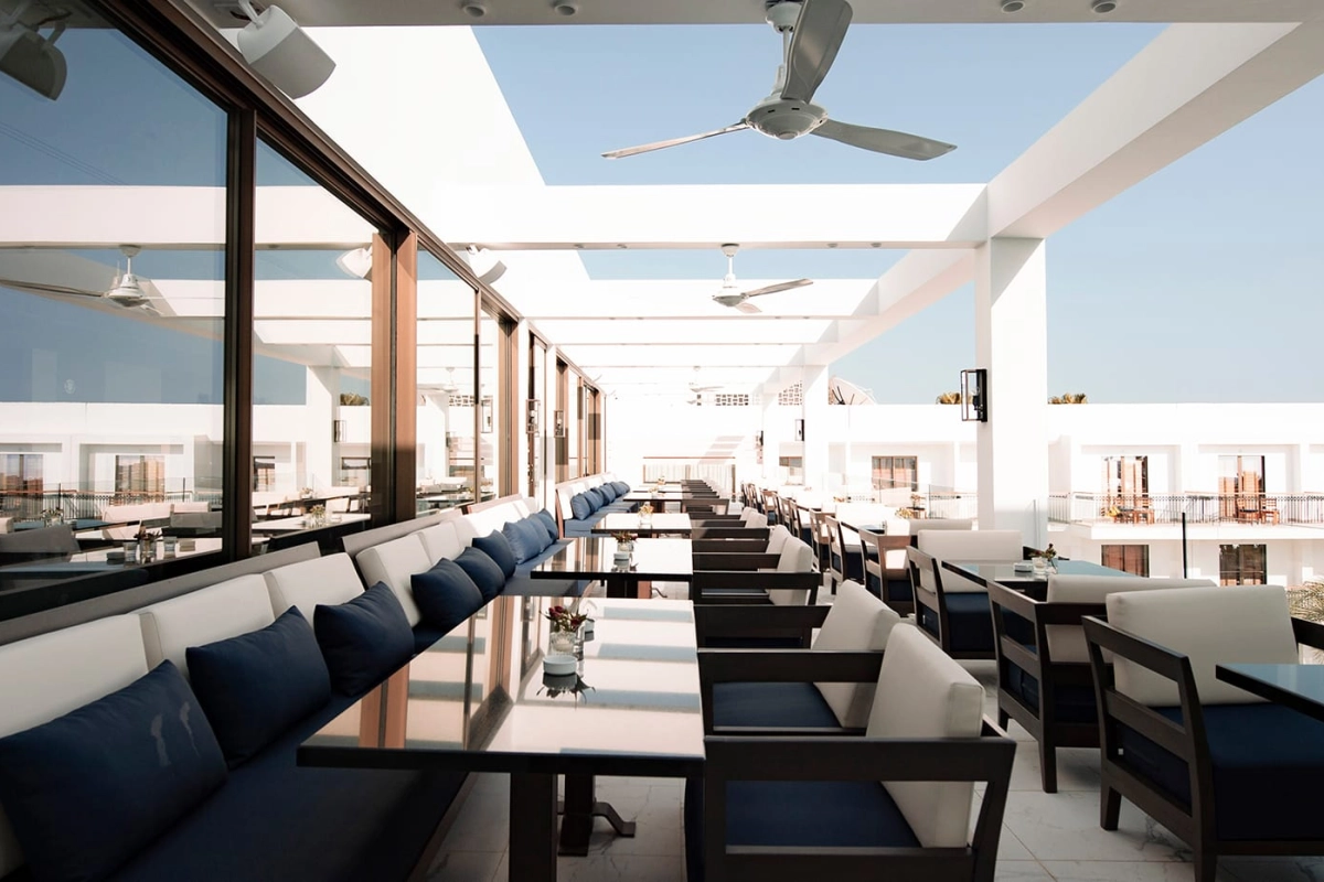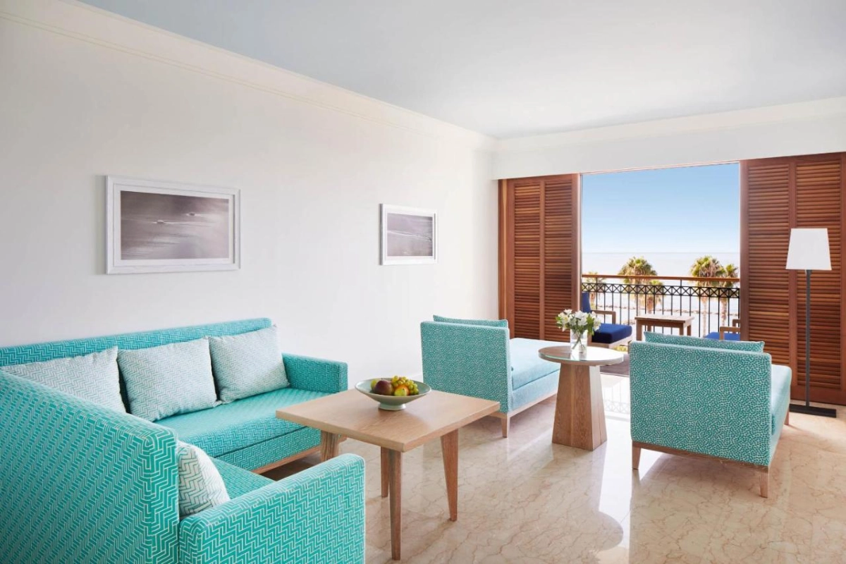 Dining at The Annabelle is a celebration of flavour and ambiance. Fontana Restaurant serves a certified Cypriot breakfast, bursting with local delicacies, in a sunlit setting. Mediterraneo Restaurant, with its seafront views, crafts international dishes infused with Mediterranean flair. Amorosa, the fine-dining gem, creates romantic evenings with artful plates and candlelit intimacy. The rooftop Ouranos Lounge & Bar delights with multi-ethnic tapas and platters, while the nearby Antasia beach bar blends Asian-Mediterranean flavours with coastal charm. Five stylish bars, including the open-air Grotto, serve delicate local wines and crafted cocktails, enhanced by live music under starlit skies. Curated experiences, from private sailing to guided tours of Paphos's archaeological sites, ignite exploration.