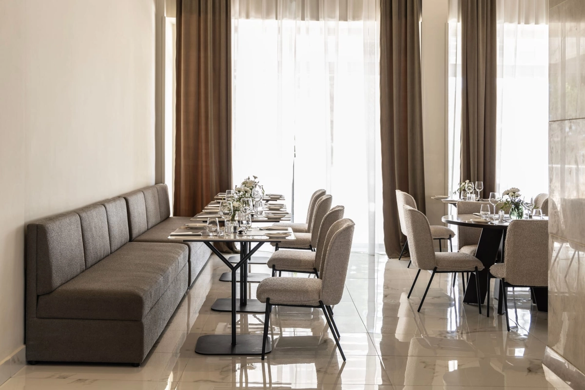 Dining at Cali unfolds as a gentle indulgence at the on-site restaurant, where breakfast choices range from vibrant buffets to continental spreads and vegetarian delights, all crafted with fresh, local touches. Evening meals elevate Cypriot and Mediterranean flavours in elegant settings, served with attentiveness that enhances every bite. Room service extends the charm, delivering light fare or full repasts to your balcony under the stars. The terrace bar pours refreshing cocktails and fine wines, ideal for savouring the coastal breeze as the day fades into twilight, fostering moments of quiet connection.