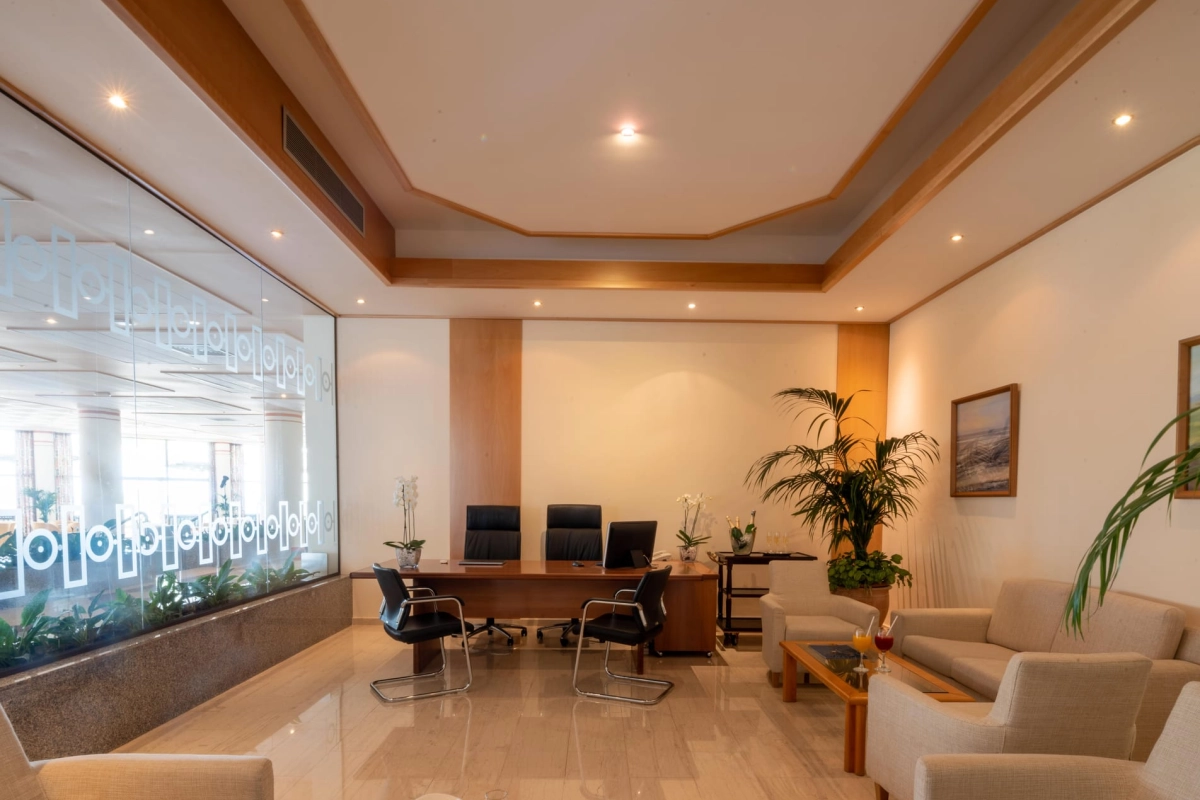 The 208 rooms, featuring twin or double beds, are crafted with elegance, offering air-conditioned comfort, satellite TVs, espresso machines, and spacious balconies with views of the Mediterranean or lush gardens. Deluxe bathrooms with bathrobes and slippers add a touch of indulgence, creating a serene retreat for relaxation.