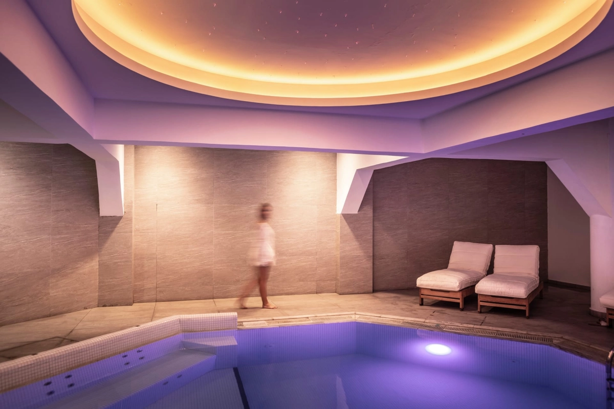 Dining at Piatakia Restaurant delights with vibrant buffets for breakfast, lunch, and dinner, featuring live cooking stations with luxury ingredients like salmon, duck, and seafood, alongside vegetarian and gluten-free options. A seasonal Peruvian fusion restaurant, open May to October, offers an à la carte menu with bold flavours. Between meals, guests can savour à la carte snacks or afternoon tea with chocolates from 3 to 5 PM. The main bar crafts an extensive cocktail list, premium whiskeys, and bottled wines, while the seasonal Pool Bar serves casual drinks from 10 AM to 6 PM. Leisure thrives with five pools, including an outdoor pool, an indoor heated pool, and an adults-only hydropool. The Sana Health Club offers a modern fitness area with cardio machines, a sauna, and steam bath, while a cozy treatment room provides customized massages. Nearby beaches and curated excursions to UNESCO heritage sites or traditional villages add adventure.