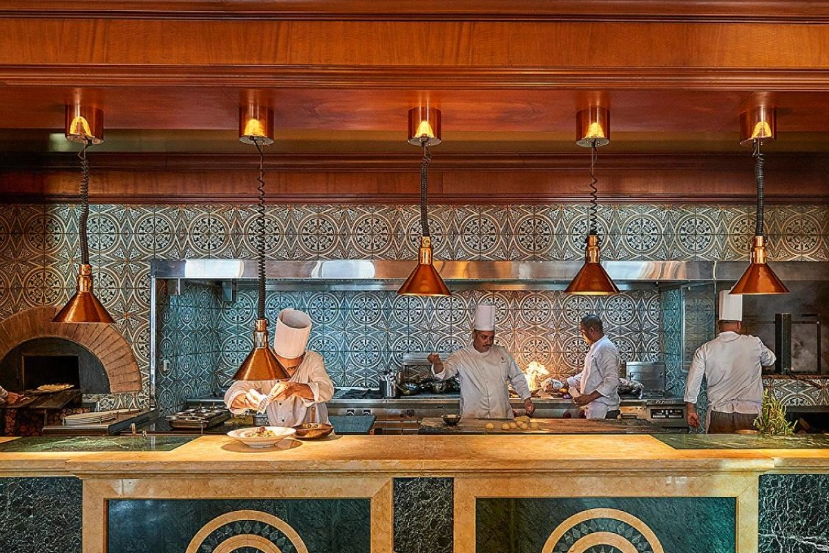 The signature restaurant serves a breakfast buffet with fresh fruits and pastries, alongside authentic Egyptian dishes that capture Cairo's culinary heritage. Additional dining venues offer international fare, paired with cocktails in breezy settings, accompanied by soft oud melodies for a warm, inviting atmosphere.
