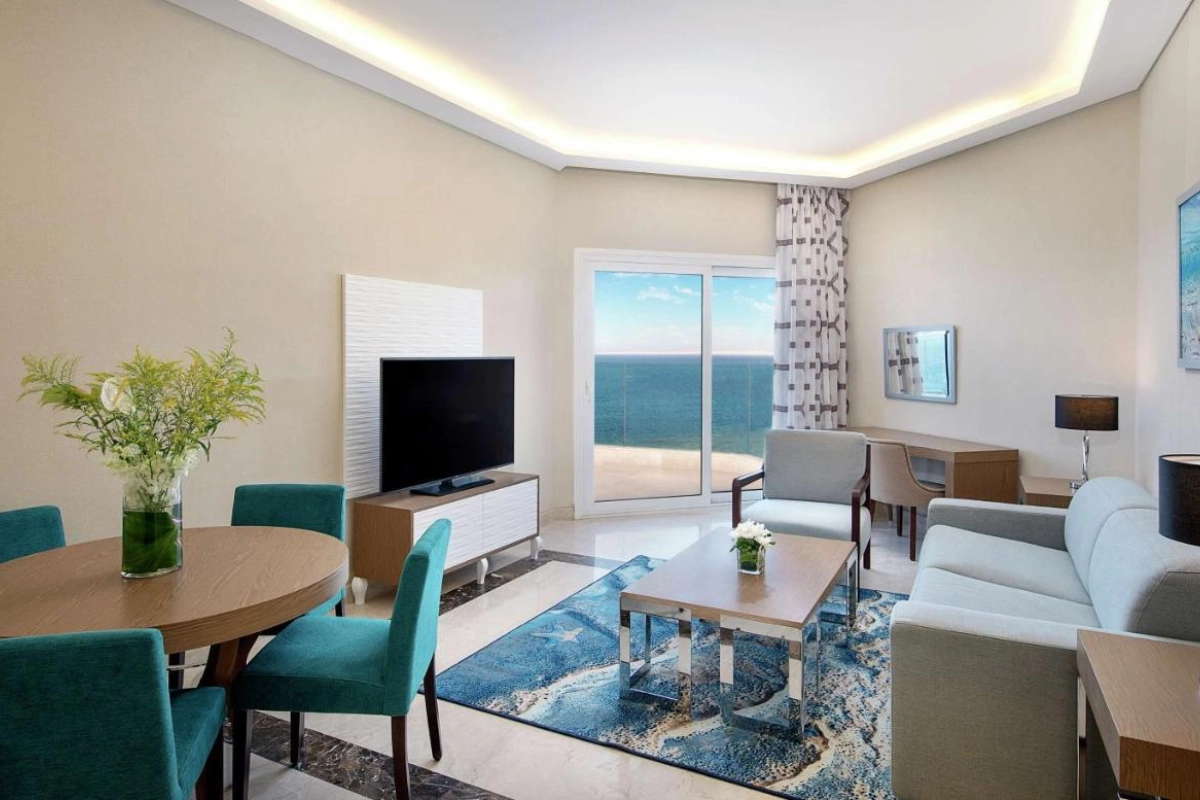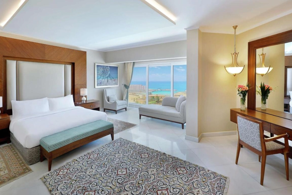 The 262 rooms and suites feature air-conditioned spaces, flat-screen TVs, minibars, safe boxes, and private bathrooms with baths, showers, hairdryers, and complimentary toiletries. Private balconies open to Red Sea or resort views, creating a restful sanctuary for couples or families. Two outdoor pools, a kids' aqua park, and free Wi-Fi ensure a seamless blend of relaxation and connectivity.
