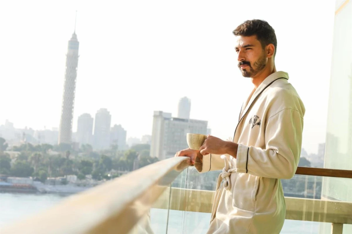 The 191 rooms and suites feature air-conditioned spaces, high-definition LCD TVs with satellite channels, free movie libraries, minibars with complimentary Coca-Cola, and private bathrooms with premium toiletries. Private balconies open to Nile or city views, creating a restful sanctuary for couples or travellers, enhanced by 24/7 butler service and a pillow menu. A rooftop pool and free Wi-Fi ensure a seamless blend of relaxation and connectivity.