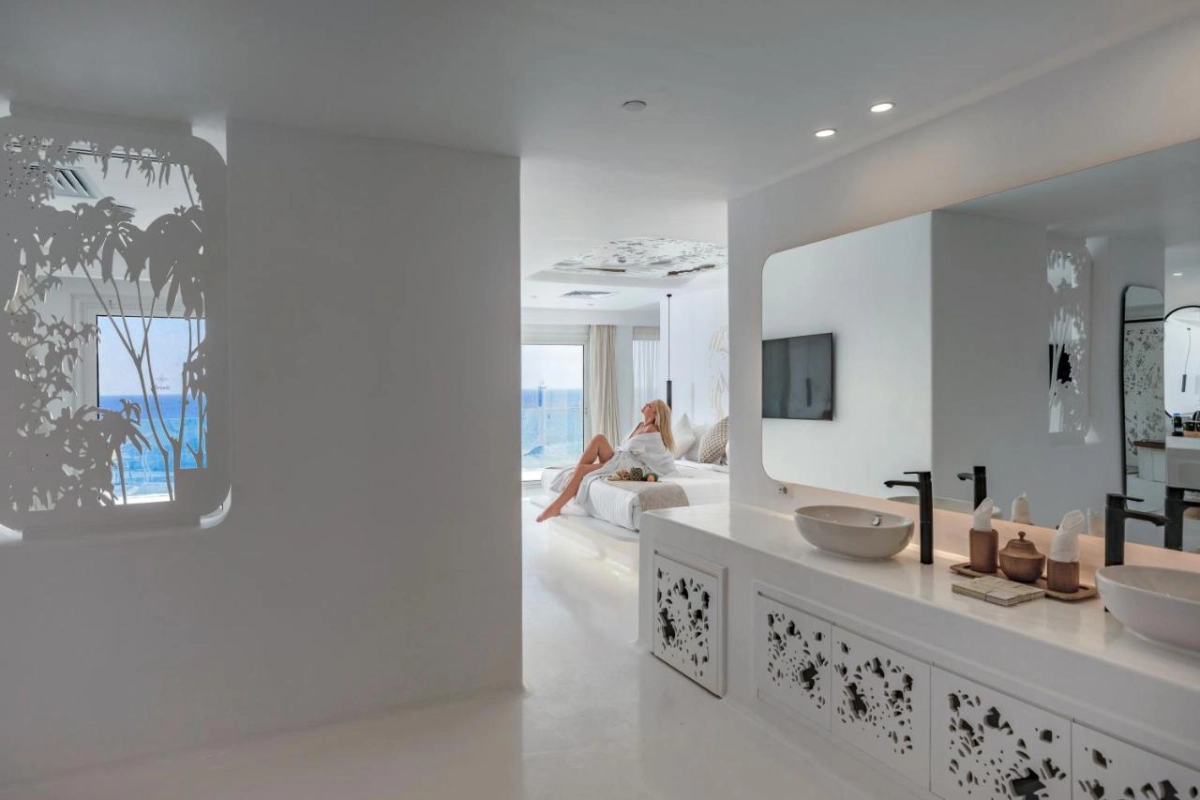 The 218 rooms feature air-conditioned spaces, safety deposit boxes, minibars, and private bathrooms with premium toiletries. Private balconies open to Red Sea or garden views, creating a restful sanctuary for couples or solo travellers. Three heated pools, a private beach, and free Wi-Fi ensure a seamless blend of relaxation and connectivity.