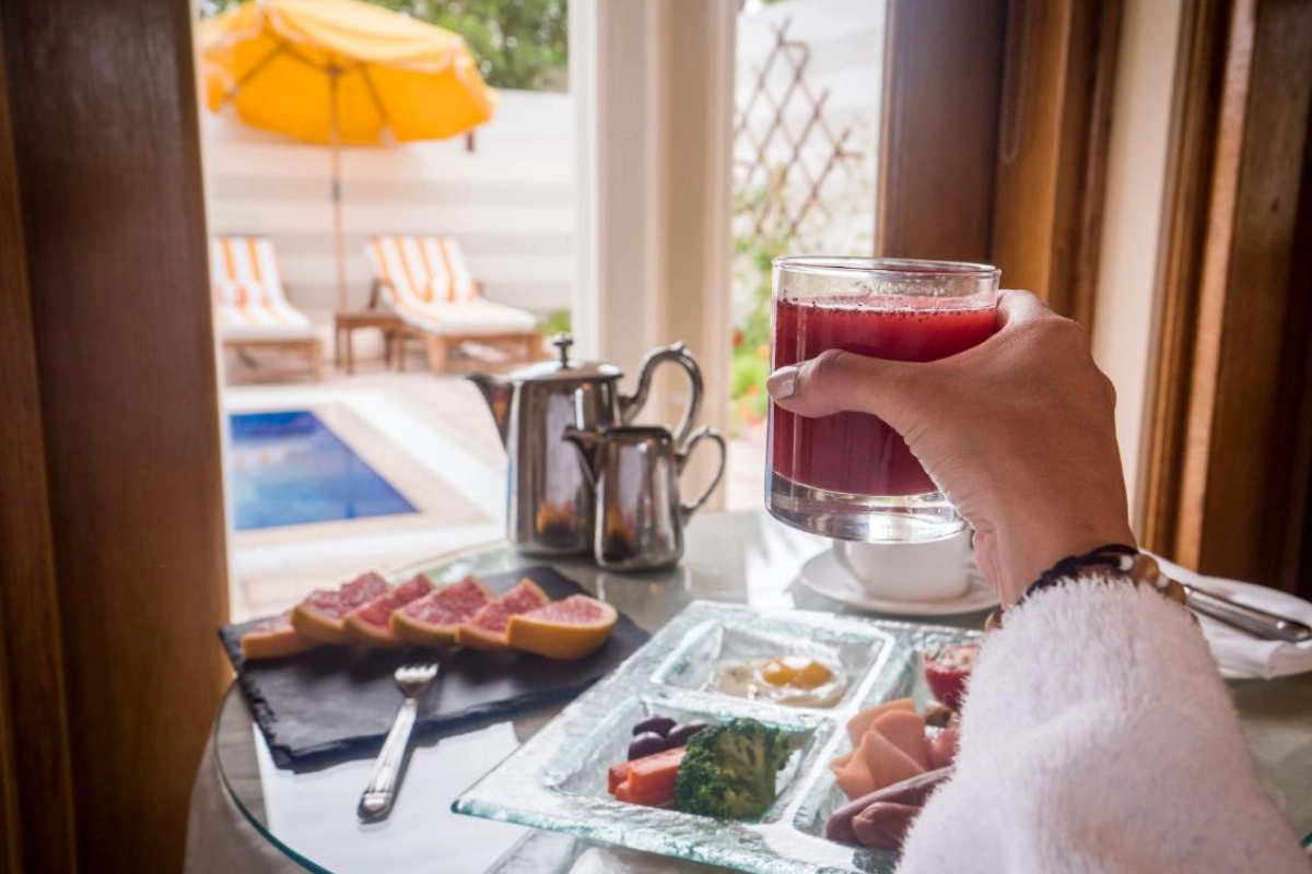 The 102 suites feature air-conditioned spaces, flat-screen satellite TVs, walk-in closets, minibars, and glass-walled bathrooms with marble bathtubs, separate showers, and premium toiletries. Private terraces, some with garden pools or iPod docks, open to Red Sea or lush garden views, creating a restful sanctuary for couples or travellers. An azure pool, private beach, and free Wi-Fi ensure a seamless blend of relaxation and connectivity.