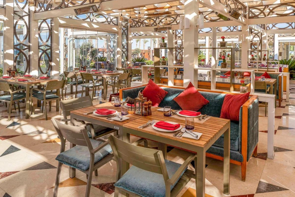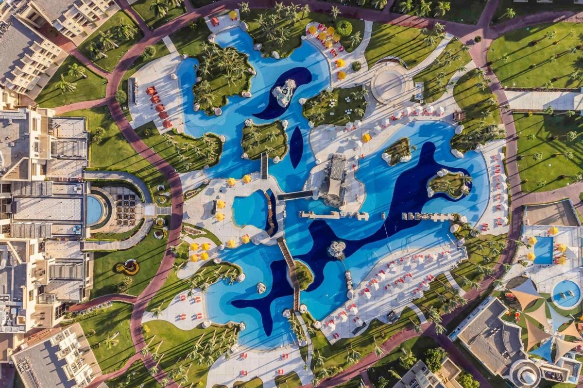 Anjana Spa offers Turkish hammam, massages, and facials, while the Exclusive Sports Club provides CrossFit, Pilates, and yoga. Rixos Aquaventure Park features 23 water slides, a lazy river, and dry attractions like go-karts. Complimentary snorkeling, diving, and beach football explore vibrant reefs, with a concierge arranging trips to Naama Bay, weaving in Sharm El Sheikh's dynamic pulse.