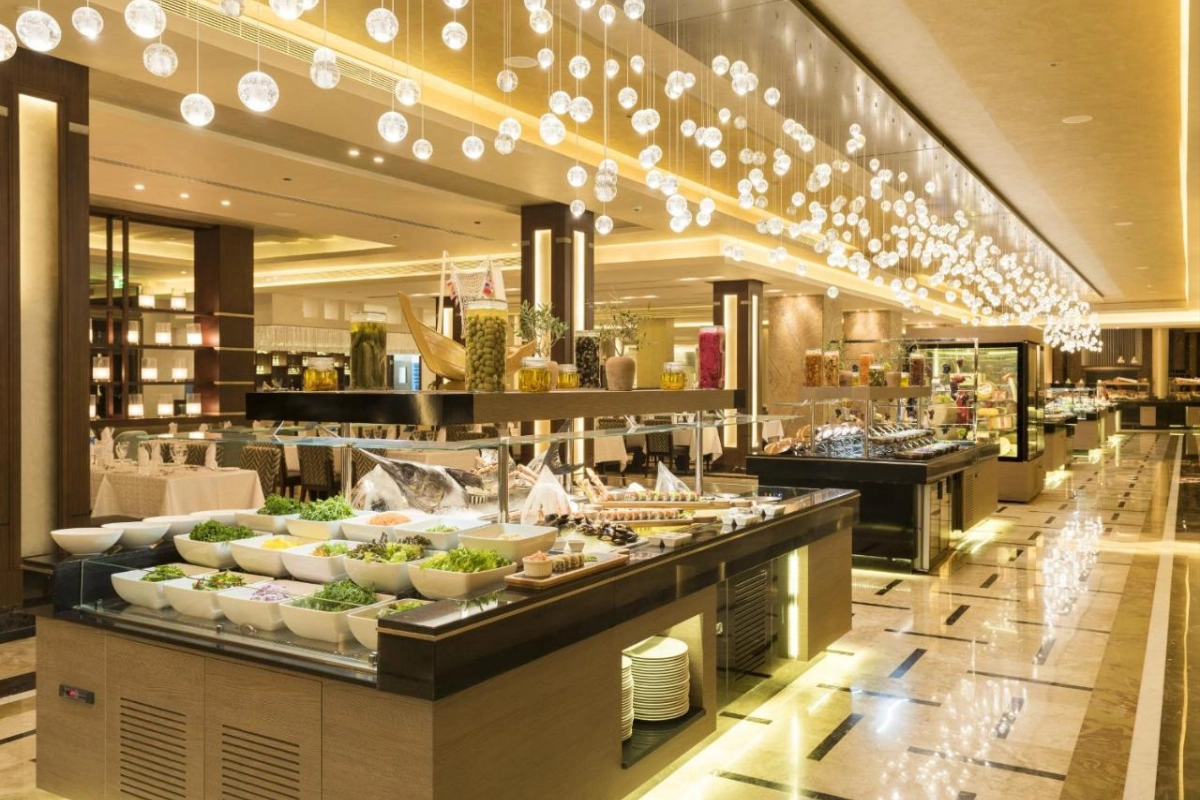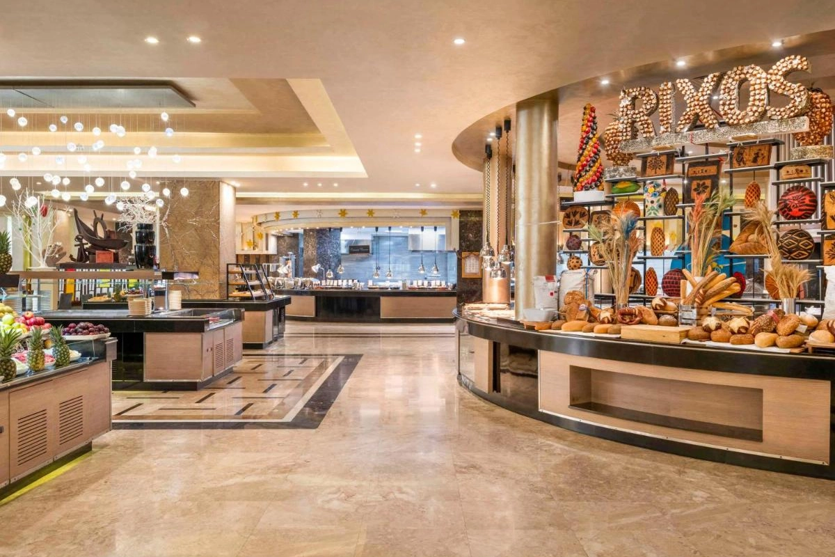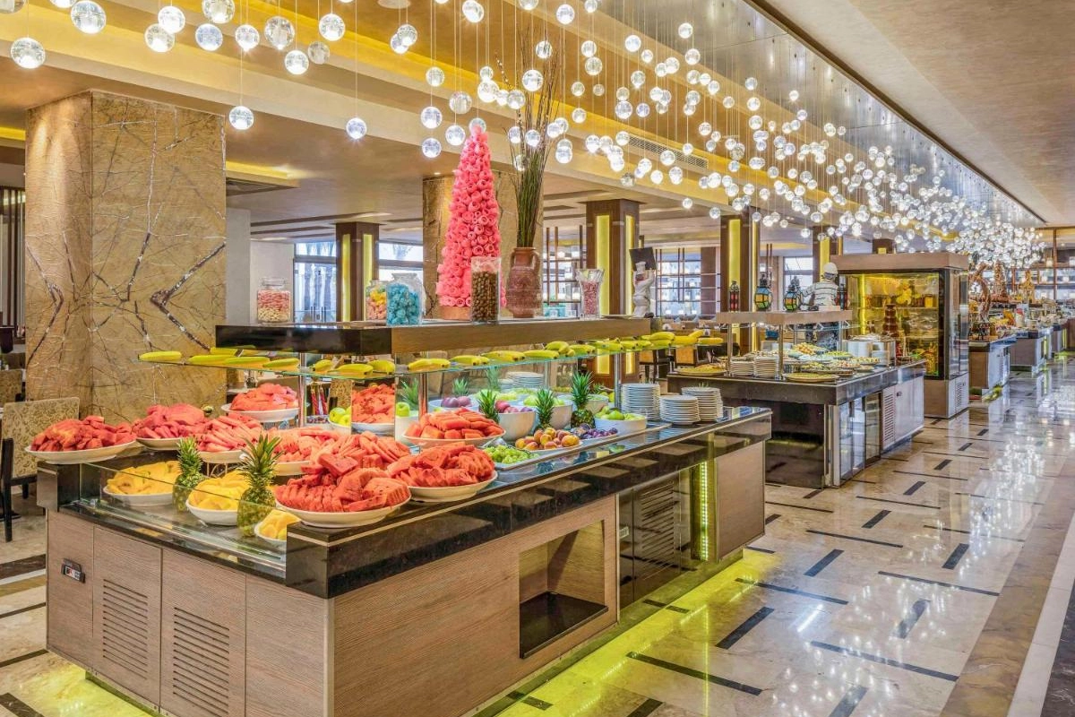 Ten dining venues, including Turquoise's grand buffet and nine à la carte restaurants, serve breakfasts with fresh fruits, alongside Turkish, Asian, seafood, Brazilian, French, and Italian dishes. Eleven bars, from beachside to poolside, craft cocktails, paired with live music or nightclub DJ sets, fostering a warm, festive atmosphere.