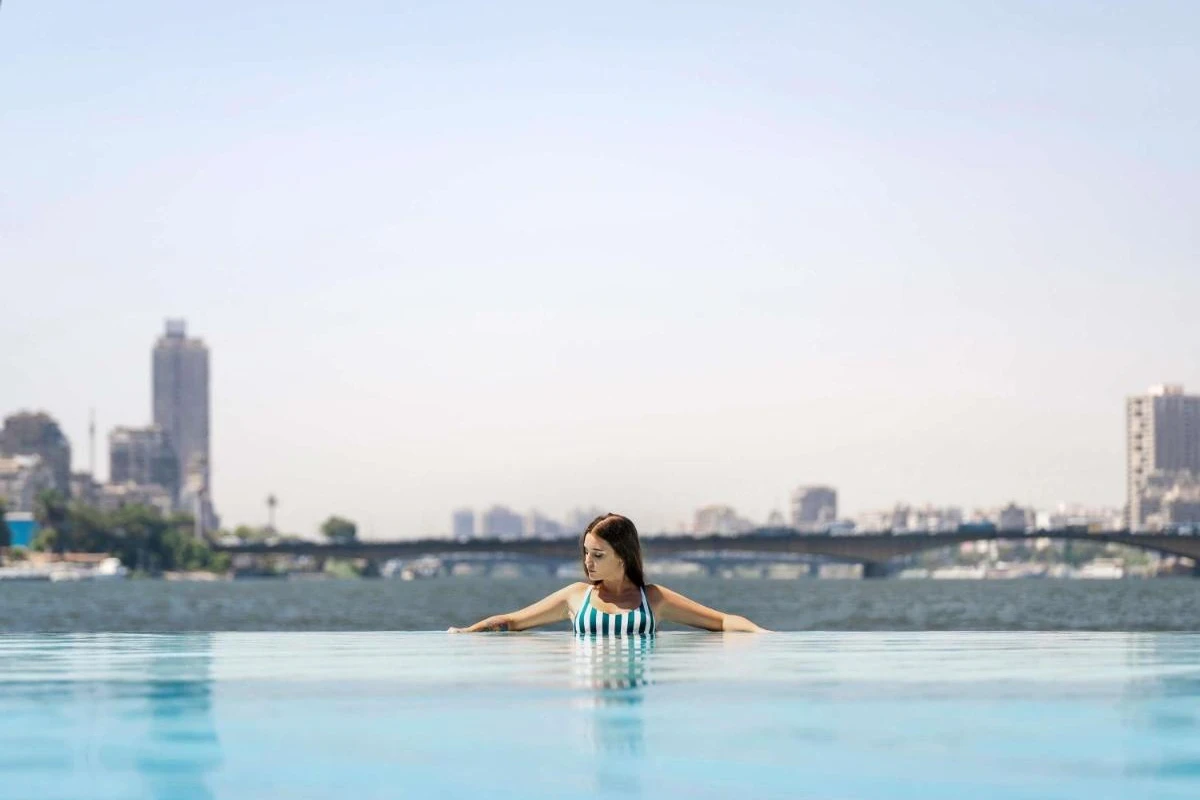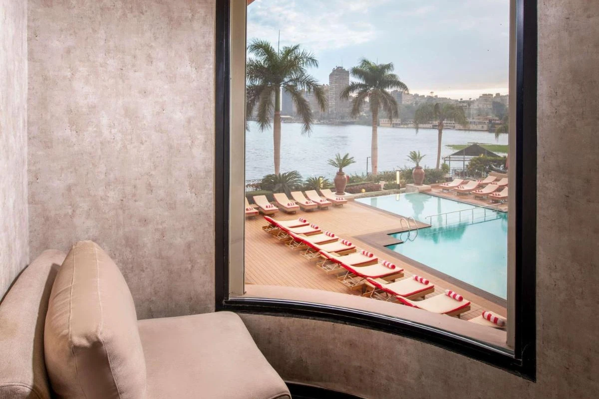 The 433 rooms and suites feature air-conditioned spaces, satellite TVs, minibars, and private bathrooms with premium toiletries. Many rooms open to sweeping Nile or city views, creating a restful sanctuary for couples or travellers. An infinity outdoor pool and free Wi-Fi ensure a seamless blend of relaxation and connectivity.