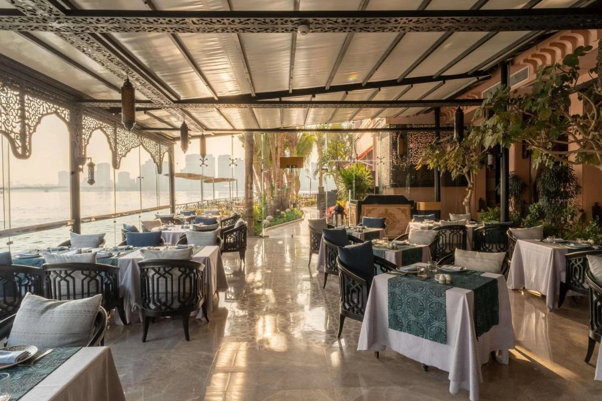 Three dining venues offer diverse flavours. Le Deck serves Moroccan and Egyptian specialties, La Palmeraie crafts Mediterranean dishes, and La Madeleine provides French pastries, with breakfasts featuring fresh fruits. Sunny Bar and Window on the Nile offer cocktails, paired with soft oud melodies, fostering a warm, inviting atmosphere.