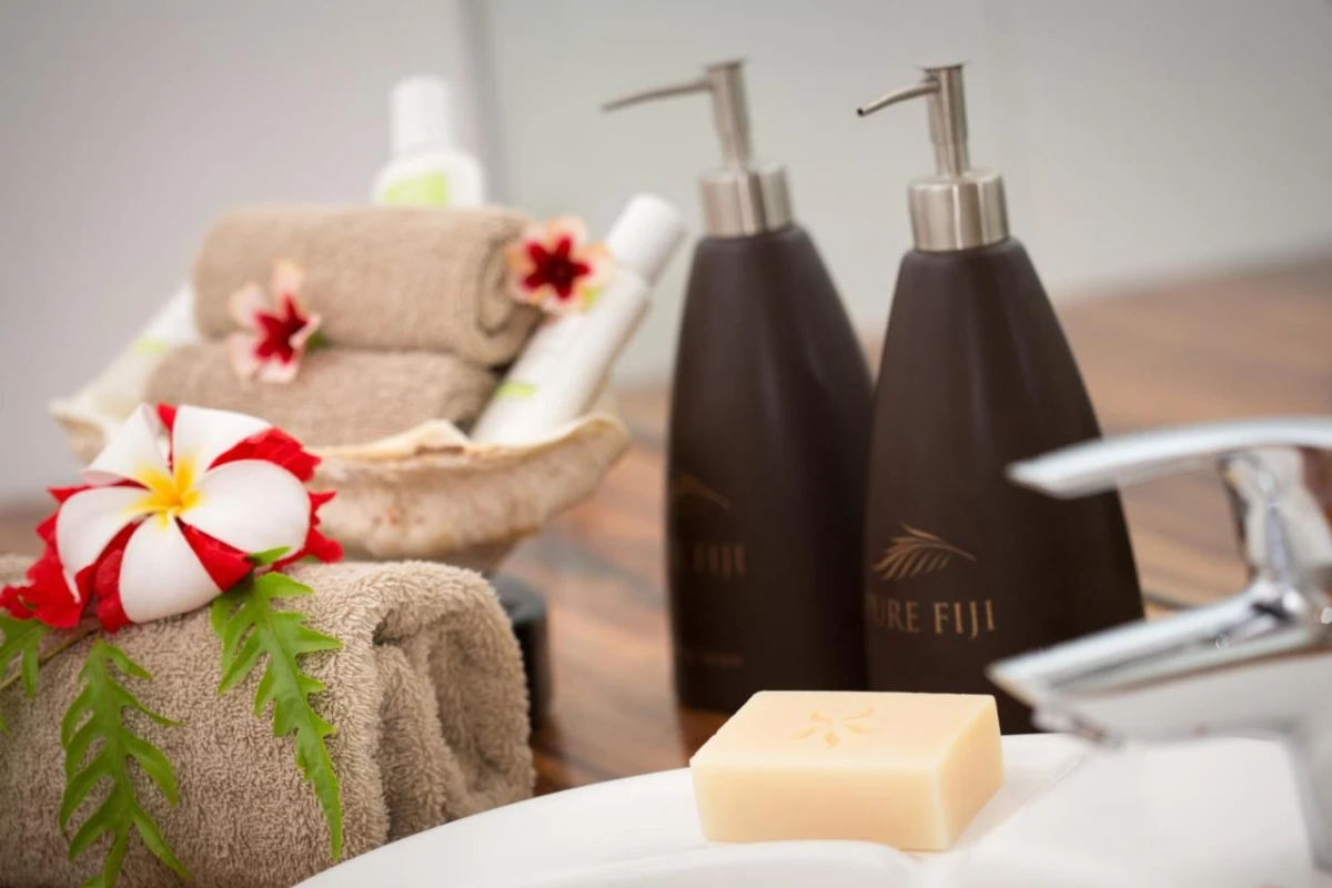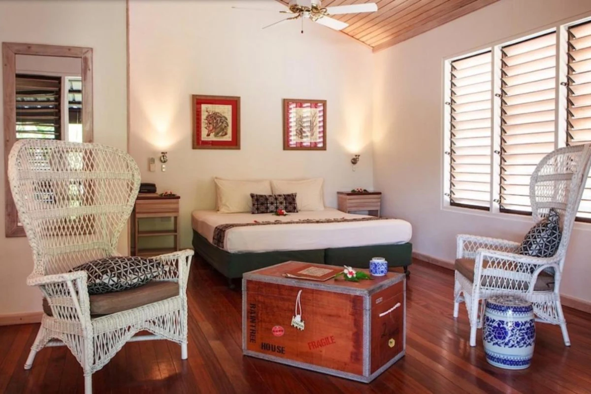 The 55 air-conditioned villas and bures, blending traditional rustic Fijian décor with separate living areas, tea and coffee facilities, and Pure Fiji bathroom amenities, nestle alongside the white sandy beach, tranquil lagoon, or secluded gardens, each offering a private haven to savour the island's gentle rhythms.
