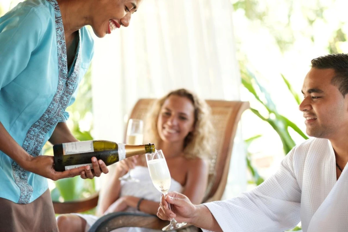 Dick's Place Bar & Bistro crafts à la carte and buffet Fijian specialties like fresh seafood and taro-root dishes in a lively setting, while The Trader Café serves casual meals overlooking the lagoon's shimmer, perfect for lingering lunches. The famous Island Bar pours local spirits, crisp beers, and fine wines under open skies, complemented by poolside bites from the two inviting swimming pools. The Makere Wellness Spa soothes with manicures, pedicures, massages, and body scrubs using natural essences, and the onsite Subservice Fiji dive centre unlocks underwater wonders, while complimentary daily snorkeling trips, Hobie cats, SUPs, kayaks, beach umbrellas, and sun loungers encourage effortless explorations of the marine sanctuary.