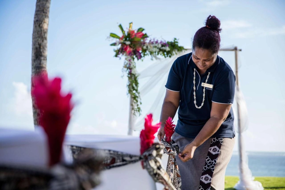 The five restaurants weave a tapestry of flavours, from award-winning Fijian-inspired seafood dishes to international grills, savoured beachside or in lush settings, while the café offers light pastries and aromatic brews, and five bars—including a swim-up pool bar—pour sunset cocktails amid the lagoon-style pool's splash zone waterpark or the adults-only pool's calm. Bebe Spa Sanctuary, perched on a mountain ridge with South Pacific vistas, soothes with seven treatment rooms and open-air balconies, complemented by a 24-hour fitness centre, tennis courts, golf training facility, and free kayaks and snorkeling gear. Cultural kava ceremonies, traditional fire-walking shows, and the renowned Meimei nanny service at the award-winning kids' club spark joy, while the adventure park and wedding chapel add playful and heartfelt moments.
