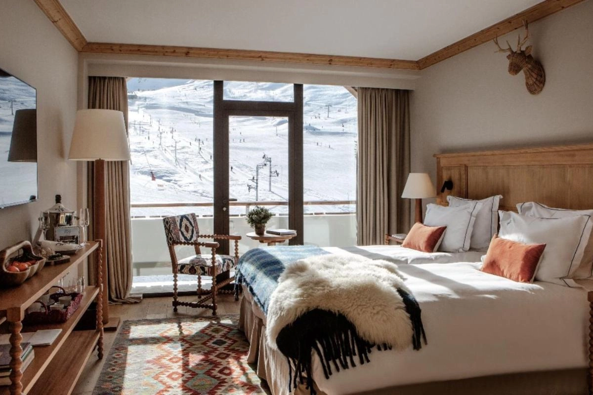 Rich wooden paneling, soft furs, and stone accents evoke the charm of a traditional alpine retreat. Many suites boast private balconies, perfect for sipping hot cocoa under a starry sky, inviting guests to bask in the serene beauty of the 3 Valleys.